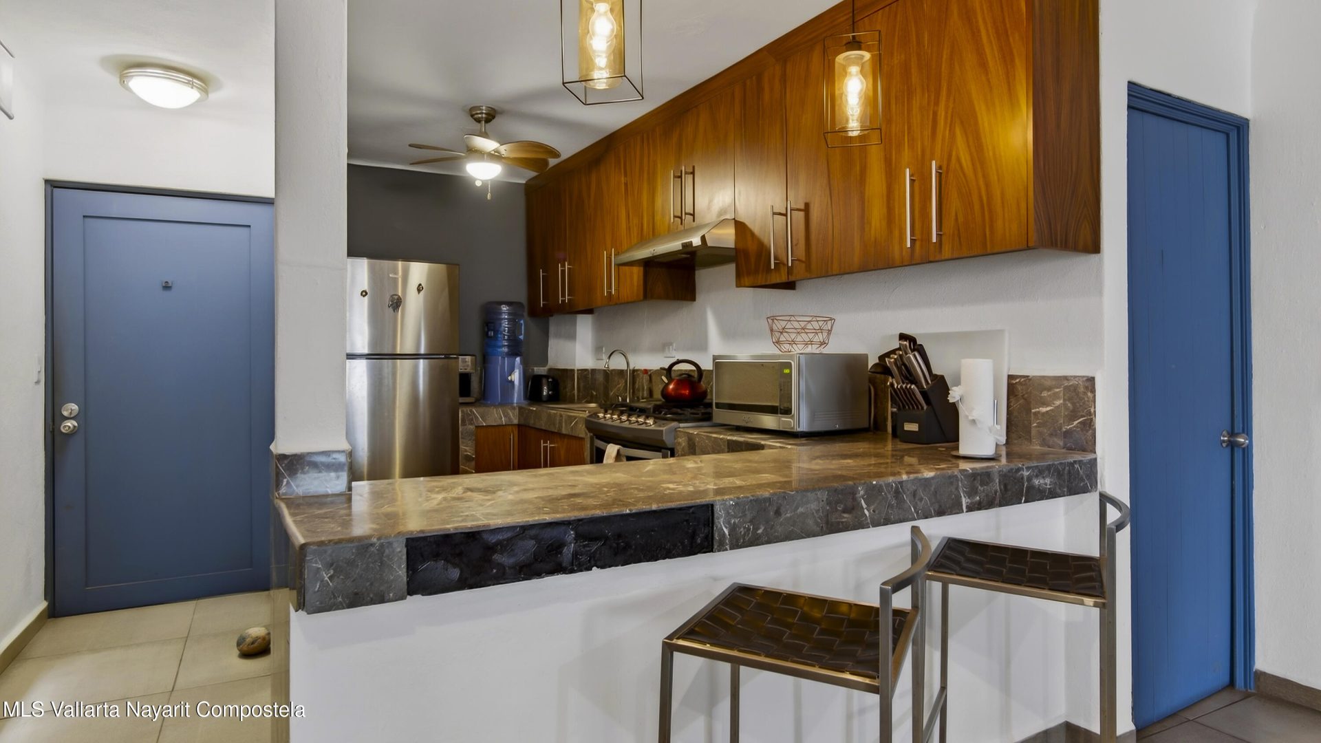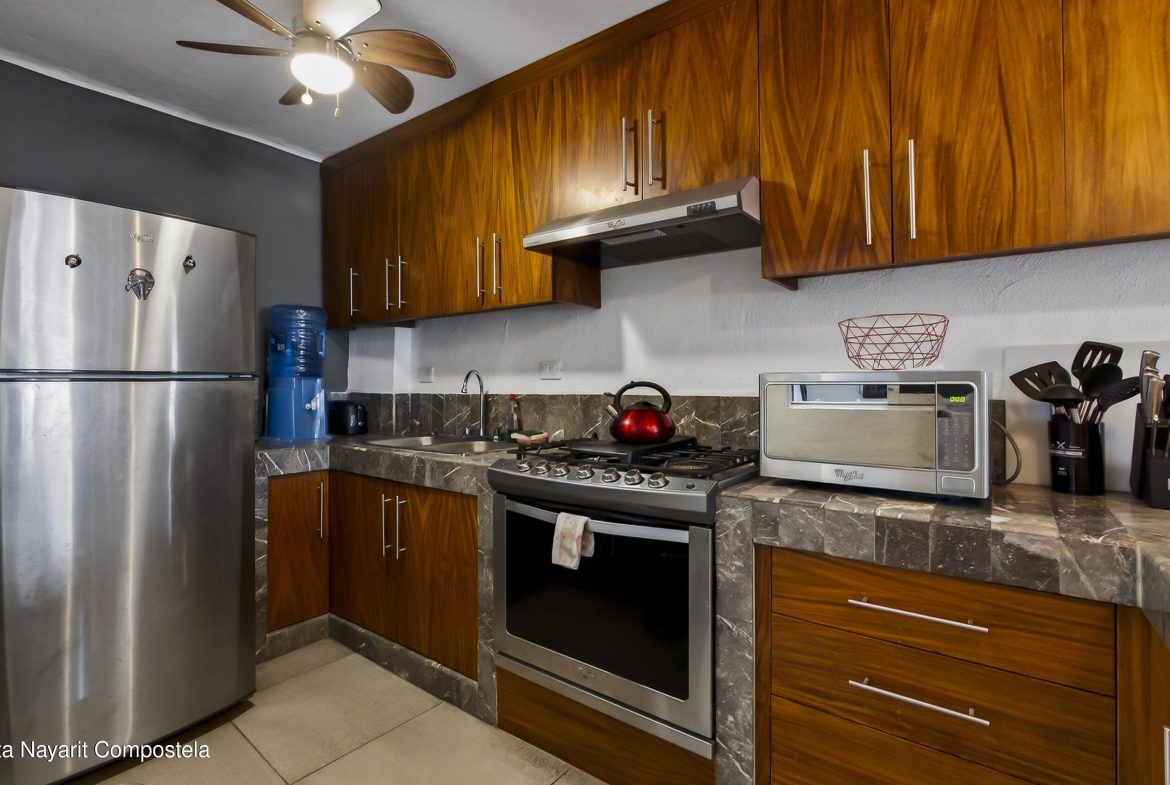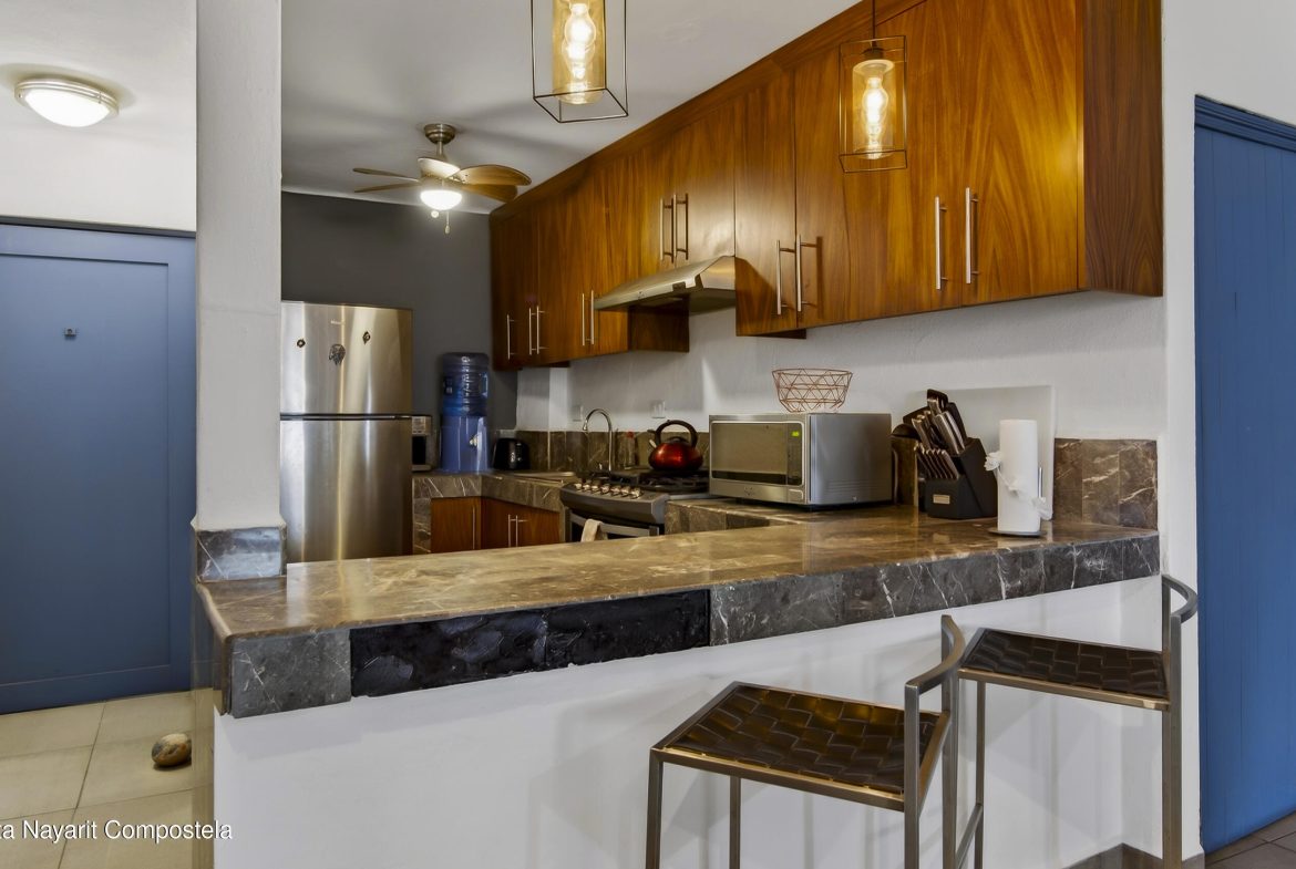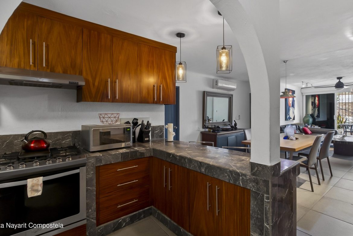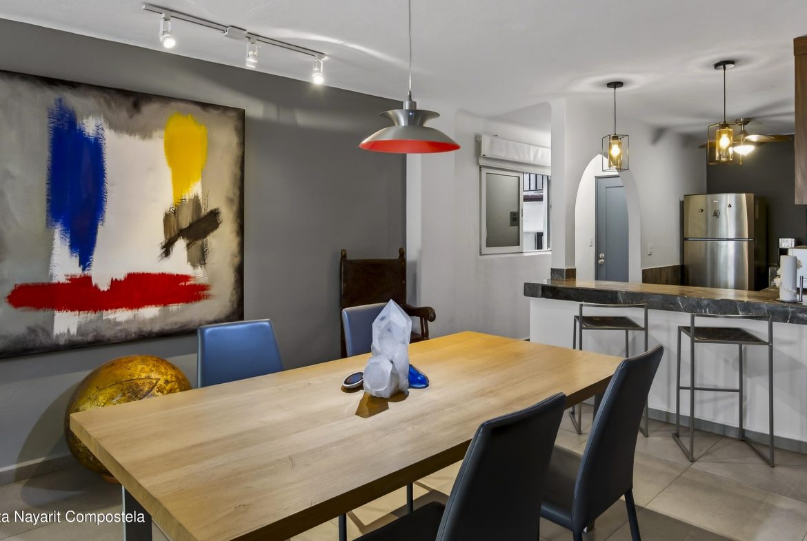 La Palapa 106 es un condominio frente al mar de 2 recamaras y 2 banos, con una superficie de 120.50 m, ubicado dentro del reconocido Condominio La Palapa, en plena Zona Romantica de Puerto Vallarta, una de las areas mas demandadas y dinamicas de la ciudad.La residencia ofrece un diseno de concepto abierto en sala y comedor, con una distribucion funcional y bien aprovechada. Los espacios interiores son comodos y bien proporcionados, creando un ambiente agradable tanto para el uso diario como para recibir invitados. La cocina se integra de manera natural al area social, lo que la hace practica y versatil para la vida cotidiana y reuniones informales.Ambas recamaras cuentan con excelente tamano y privacidad. La recamara principal dispone de bano completo en suite