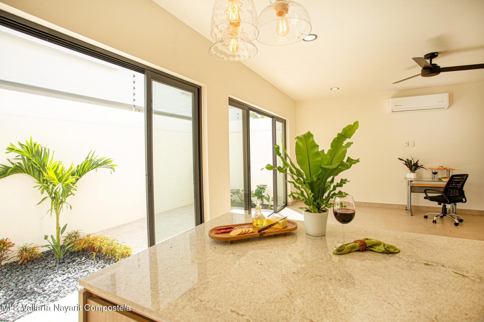 MXN Pesos 11,900,000 – Newly built custom 3 bedroom and 3.5 bath house in Fluvial. This architect designed soft modern home will be ready for a new owner soon. First level is the living, dining, laundry and a full bath. The house opens to a large terrace in the back and has expansive glass doors. The second level is three bedrooms, two guest rooms with a shared bath and a master with walk in closet and bath. Also on the second level is an office, TV or play area. The third level is a large rooftop area that is partly covered and can be used as an outdoor kitchen and area to entertain. The house also has a large parking area that is gated and solar panels. Seller would like the sell in MXN Pesos 11,900,000.