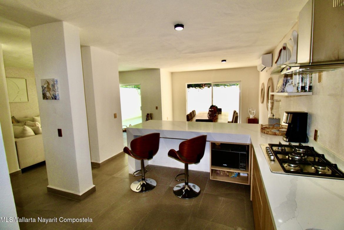 Hermosa Residencia totalmente renovada y amueblada con exquisito gusto. Tiene Garaje con puertas automaticas para 2 vehiculos, en Planta baja tiene Sala, Cocina y Comedor con 1/2 bano,, habitacion para personal domestico con bano completo. Tambien posee de un gran patio trasero y cuarto de lavado. En la segunda planta cuenta con 3 recamaras con 2 banos completos, la master suite con walking closet. La ubicacion es excelente ya que ademas de estar cerca de todo: Colegios, Plazas Comerciales, Supermercados, Cines, Gyms etc tambien esta a solo 100 metros de un increible parque en el corazon de Fluvial.