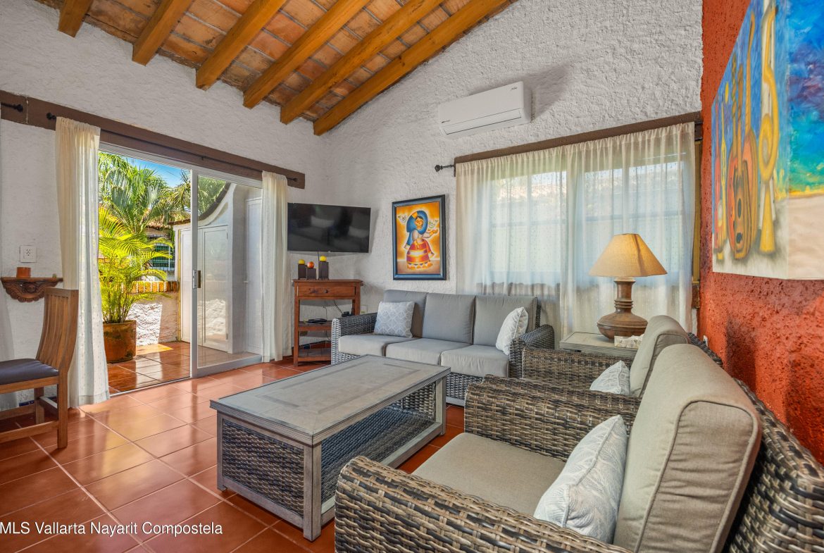 Descubre este encantador condominio de 1 habitacion y 1 bano, lleno de estilo mexicano, a solo una cuadra de la playa. Las puertas, ventanas y vigas de techo de madera de parota contribuyen a su caracter unico. El condominio se encuentra en un complejo pequeno y tranquilo ubicado en una calle de moda detras de ICON, en un vecindario tranquilo rodeado de tiendas de conveniencia, excelentes cafeterias, spas y mas. La ubicacion es inmejorable: a solo una cuadra de la playa, Chedraui, la Clinica Medica Sanmare y el Hospital San Javier. Este encantador condominio seria una excelente casa de vacaciones de invierno o una excelente oportunidad de inversion para alquileres. —