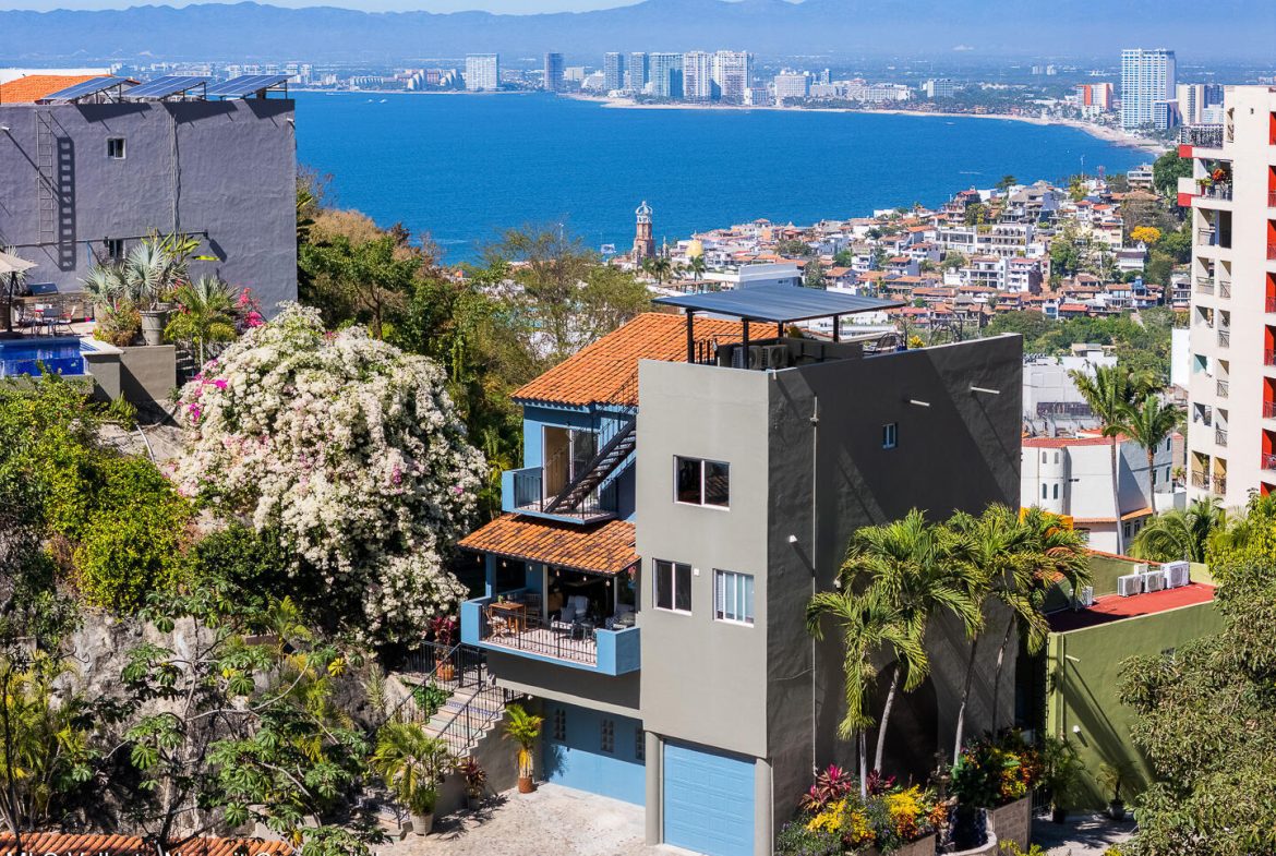 Haz tu sueno realidad en Puerto Vallarta! Esta casa recien renovada en Amapas es el lugar perfecto para disfrutar de la tranquilidad y belleza de la ciudad. Con techos de doble altura, la villa ofrece un ambiente elegante y espacioso. A solo minutos de los mejores restaurantes y tiendas, tambien cuenta con una terraza en la azotea, ideal para relajarse y disfrutar de vistas espectaculares de la bahia y la selva. Ubicada en una comunidad privada de solo 14 villas, esta casa incluye un garaje adjunto en la planta baja con espacio para dos autos. Ademas, cuenta con un estudio independiente con su propio bano, perfecto para invitados o como espacio adicional. No pierdas esta oportunidad!