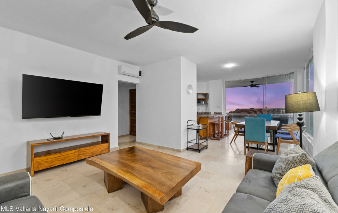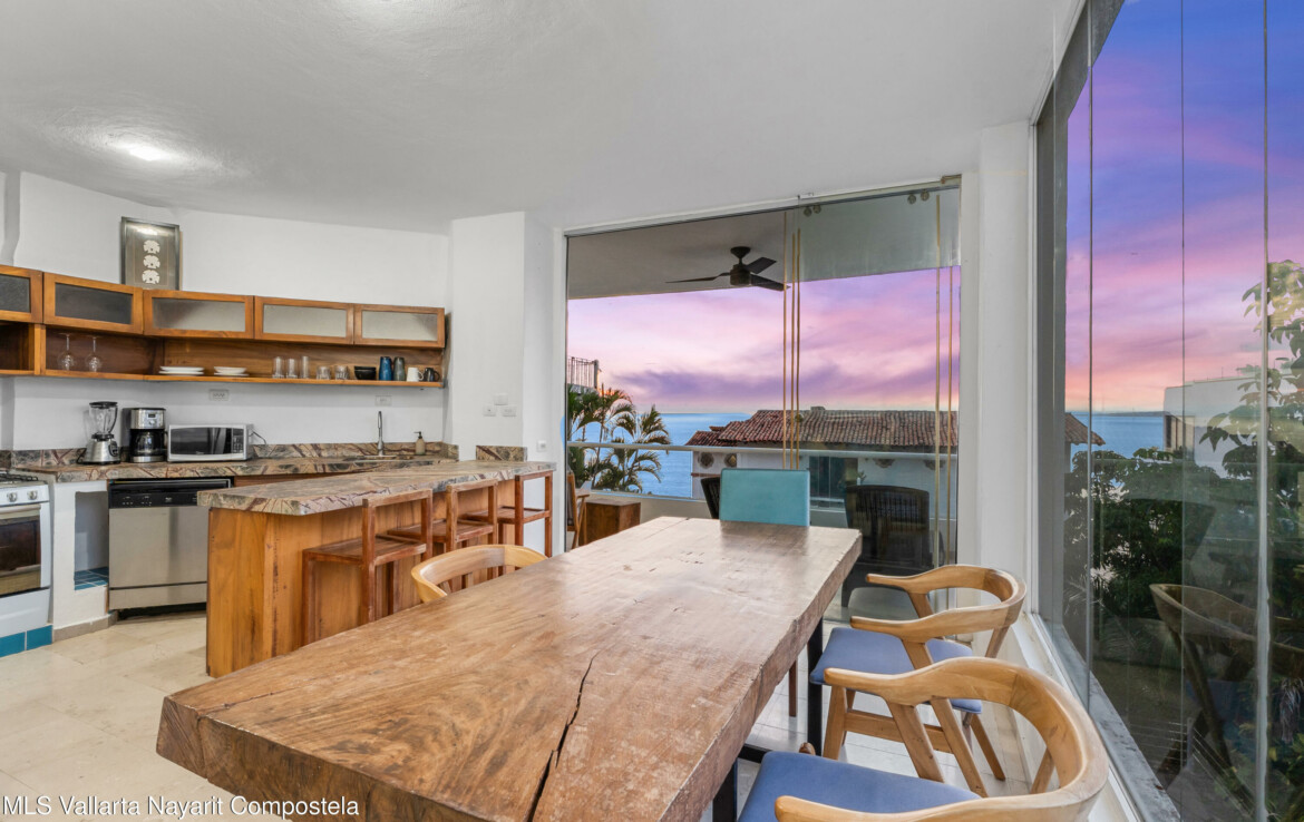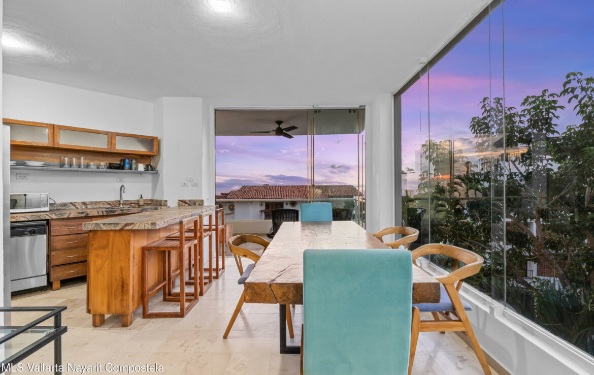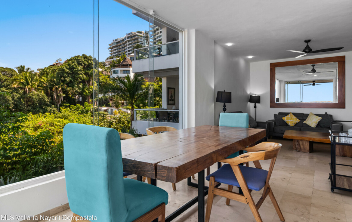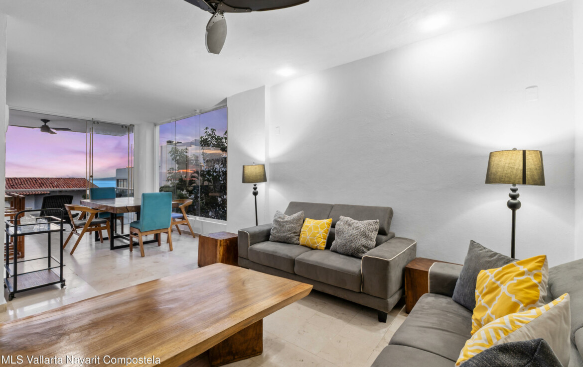 English Below -Unidad 203 – Este espectacular condominio de 2 recamaras y 2 banos en Las Penas de Teresa ofrece vistas impresionantes y un amplio patio con un diseno encantador. Ubicado en la exclusiva zona de Amapas, combina privacidad, confort y el autentico estilo de vida de Puerto Vallarta.Experience the beauty of Puerto Vallarta from this stunning 2-bedroom, 2-bathroom condominium at Las Penas de Teresa. Perched in the hillside neighborhood of Amapas, it offers both tranquility and easy access to the Romantic Zone.The highlight of the home is a spacious patio where the sparkling Pacific Ocean is outlined by the iconic red tile rooftops of Vallarta, creating a postcard-perfect view every day.