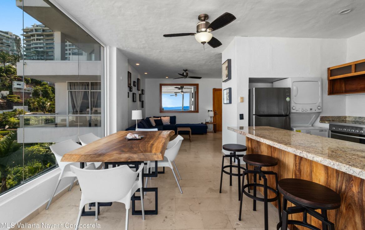 english below – Unidad 403 – Descubre este elegante condominio de 2 recamaras y 2 banos en Las Penas de Teresa, Amapas. Ubicado en el cuarto nivel, este hogar de 116 m ofrece vistas panoramicas a la bahia y la montana, un diseno amplio y un patio privado. Disfruta de amenidades boutique como alberca, elevador y estacionamiento seguro. A solo minutos de la Zona Romantica y la Playa Los Muertos, este condominio es ideal como residencia permanente, casa de vacaciones o inversion con alta demanda en Puerto Vallarta.