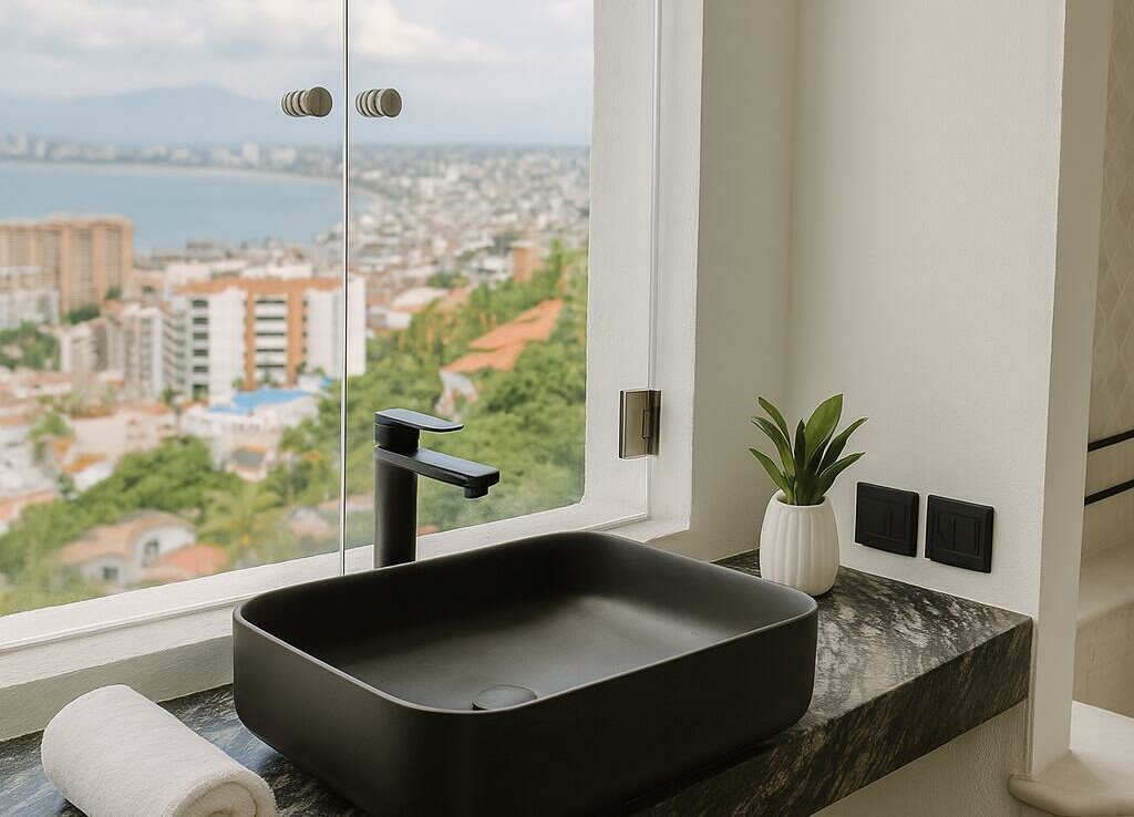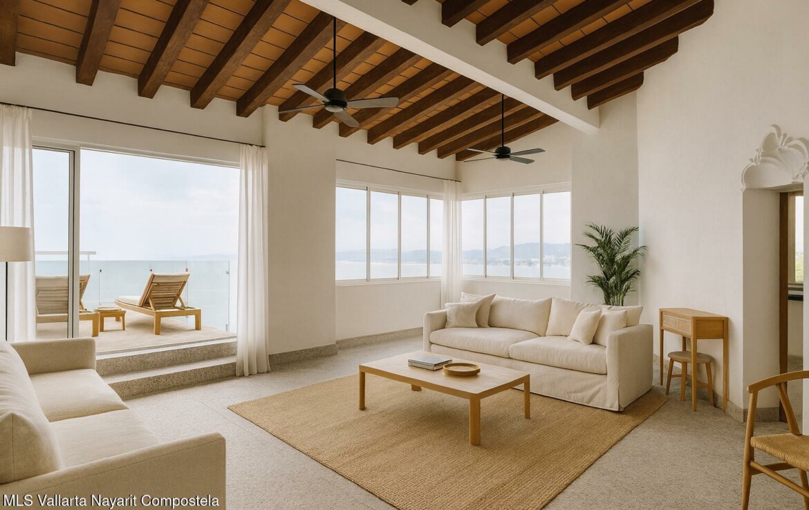 english below – El Penthouse 1 corona Las Penas de Teresa–la residencia mas emblematica del edificio, con vistas panoramicas a la bahia y las montanas. Sus terrazas amplias e interiores generosos invitan a atardeceres y reuniones. Listo para un toque de diseno, ofrece la oportunidad unica de crear tu propia obra maestra sobre Playa Los Muertos y la Zona Romantica. Penthouse 1 crowns Las Penas de Teresa–the building’s signature multi-level residence with sweeping bay and mountain views. Expansive terraces and generous interiors invite sunsets and entertaining. Ready for a designer’s touch, it offers the rare chance to craft a personalized masterpiece above Los Muertos Beach and the Romantic Zone.