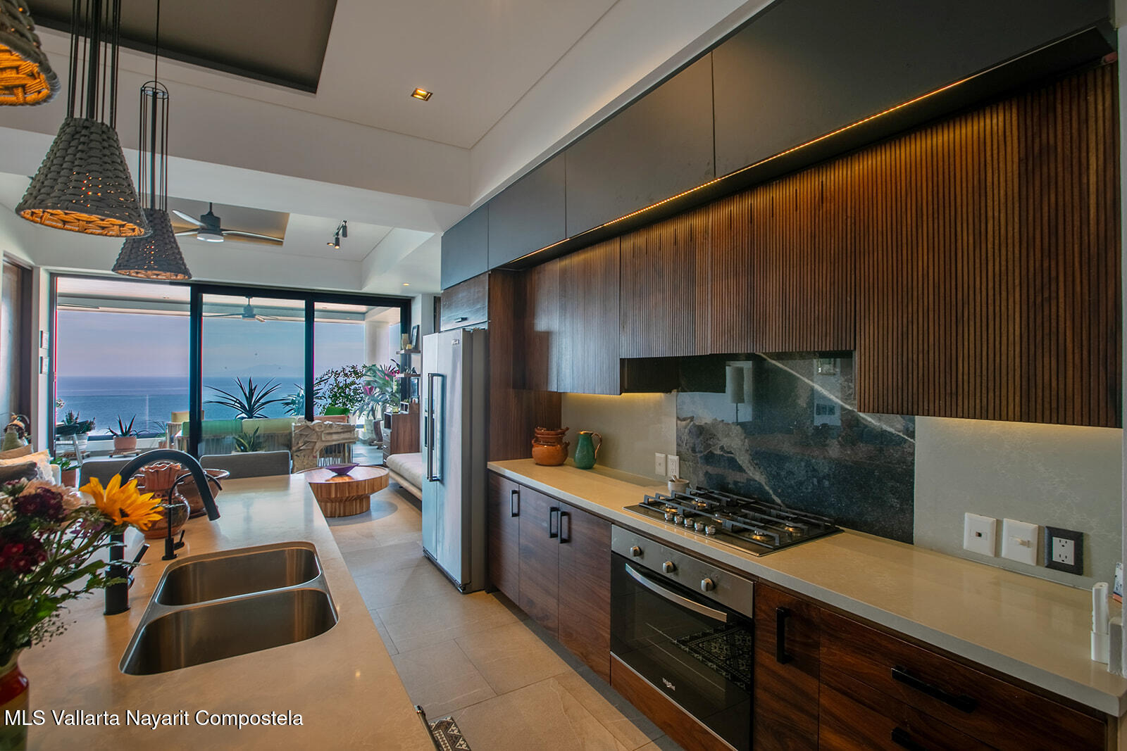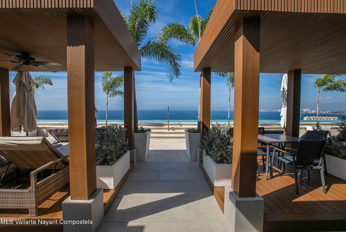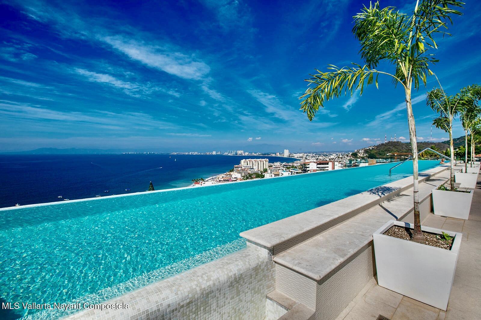 Priceless ocean views with elegant yet relaxed interior design, upgraded finishes and top tier appliances, this stunning corner unit sits right above the beloved Zona Romantica with great access to its vibrant beach and restaurant scene. Its expansive, direct ocean views deliver first-row seats to captivating sunsets over Banderas Bay. A dreamy master bedroom with a huge ensuite bathroom also has a prime ocean view, while the comfortable second bedroom is enveloped in tropical foliage. Indoor and outdoor kitchens make it a great entertaining venue. Its stately rooftop terrace and beautiful long pool is a mind-blower with multiple lounge and entertaining sections and even a work space where you’re sure to be distracted by views of the pier and entire northwest coastline. One underground…