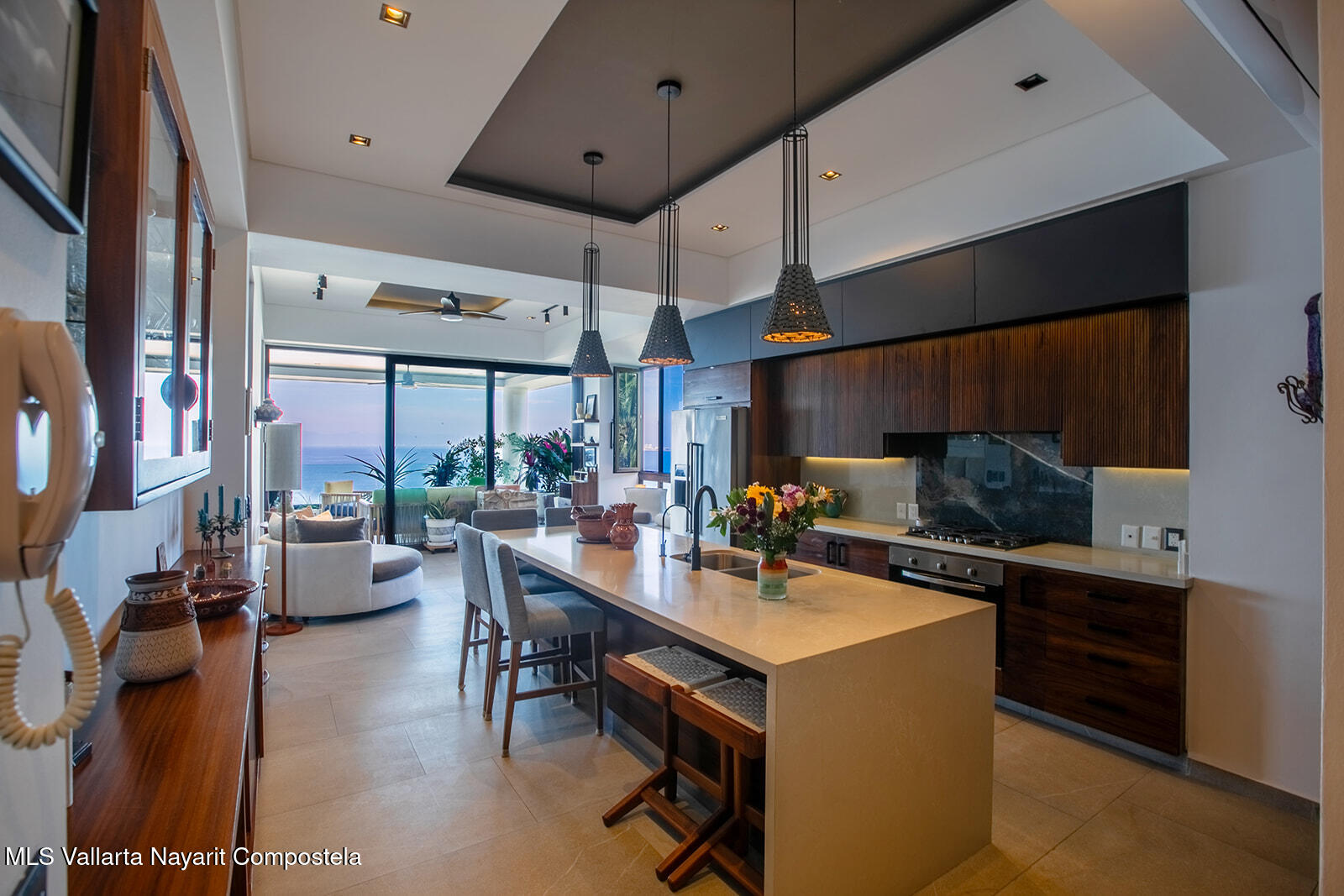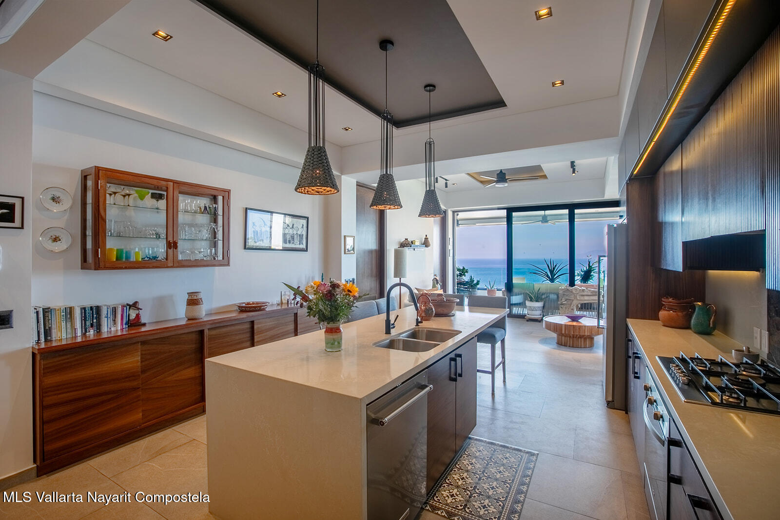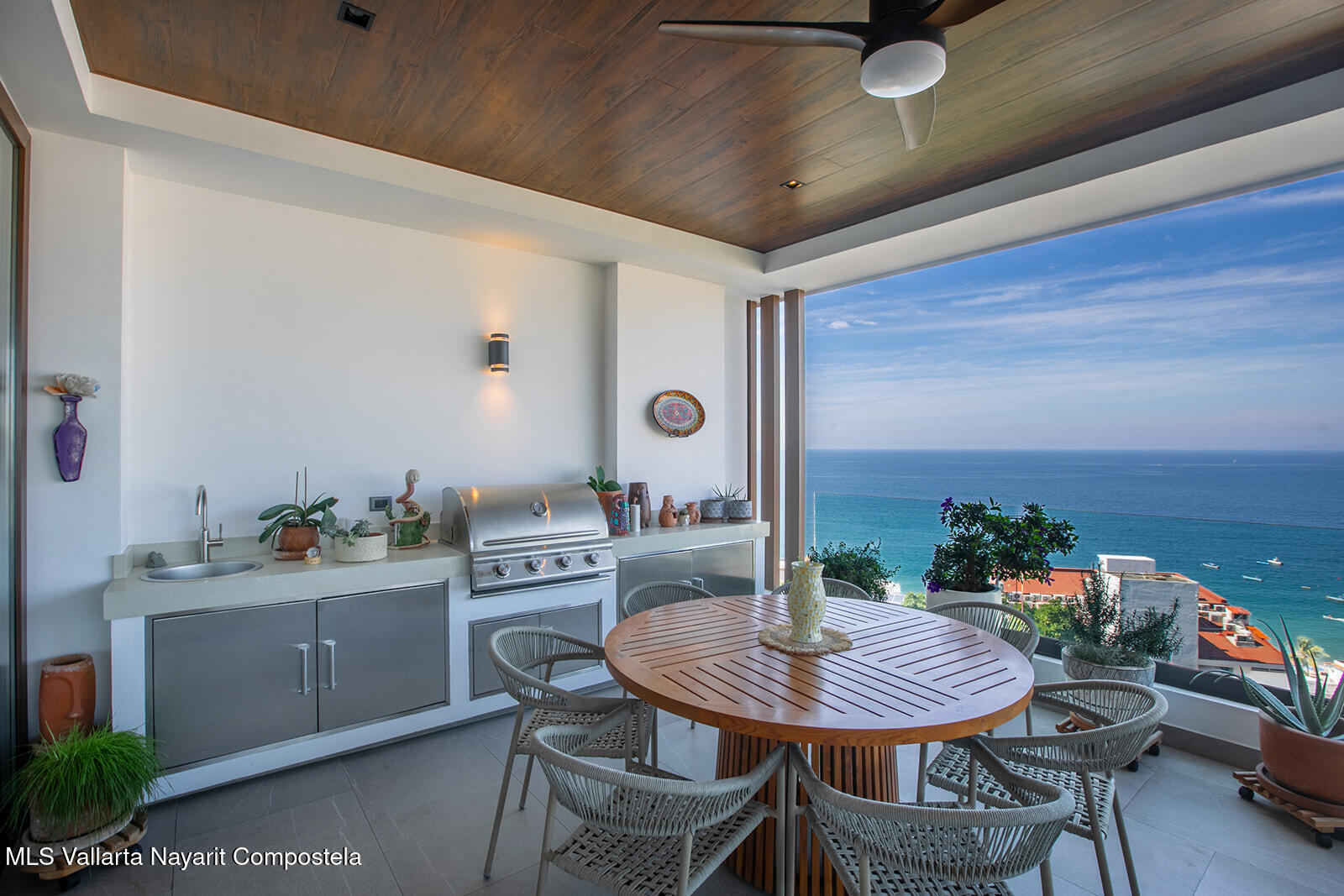 Priceless ocean views with elegant yet relaxed interior design, upgraded finishes and top tier appliances, this stunning corner unit sits right above the beloved Zona Romantica with great access to its vibrant beach and restaurant scene. Its expansive, direct ocean views deliver first-row seats to captivating sunsets over Banderas Bay. A dreamy master bedroom with a huge ensuite bathroom also has a prime ocean view, while the comfortable second bedroom is enveloped in tropical foliage. Indoor and outdoor kitchens make it a great entertaining venue. Its stately rooftop terrace and beautiful long pool is a mind-blower with multiple lounge and entertaining sections and even a work space where you’re sure to be distracted by views of the pier and entire northwest coastline. One underground…