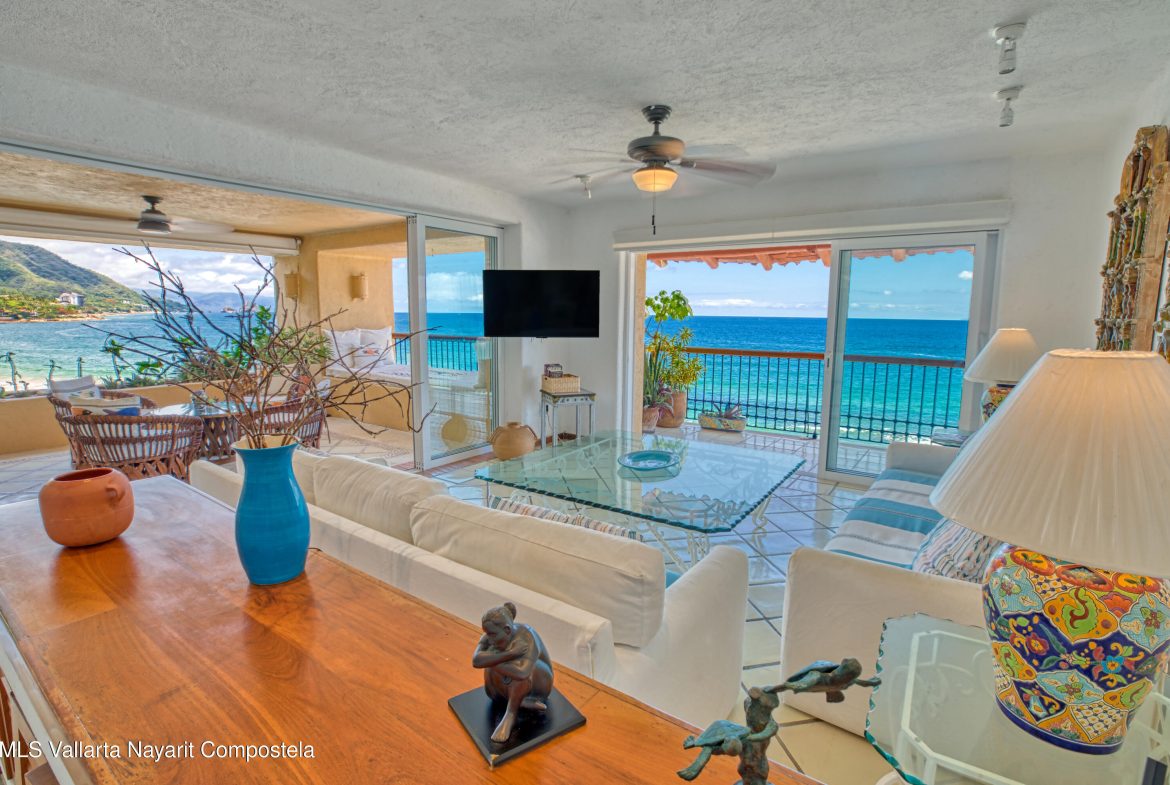 Los Palmar�s es uno de los condominios m�s codiciados de nuestra costa sur, reconocido por sus amplias �reas comunes frente al mar. Destacan su impresionante piscina infinita con vista a la increible playa de arena blanca, una palapa de entretenimiento de dos niveles ideal para cenas privadas, un gimnasio totalmente equipado, seguridad en el lugar y una amplia �rea de recepci�n con vistas panoramicas. Ubicada a solo 10 minutos del centro de Puerto Vallarta, esta unidad para ser entregada tal cual con ubicaci�n ideal en el lado sur del edificio. Cuenta con una amplia terraza con impresionantes vistas al oc�ano, la piscina y las ic�nicas Rocas de Los Arcos, ofreciendo un espacio �nico y acogedor para entretener a los invitados