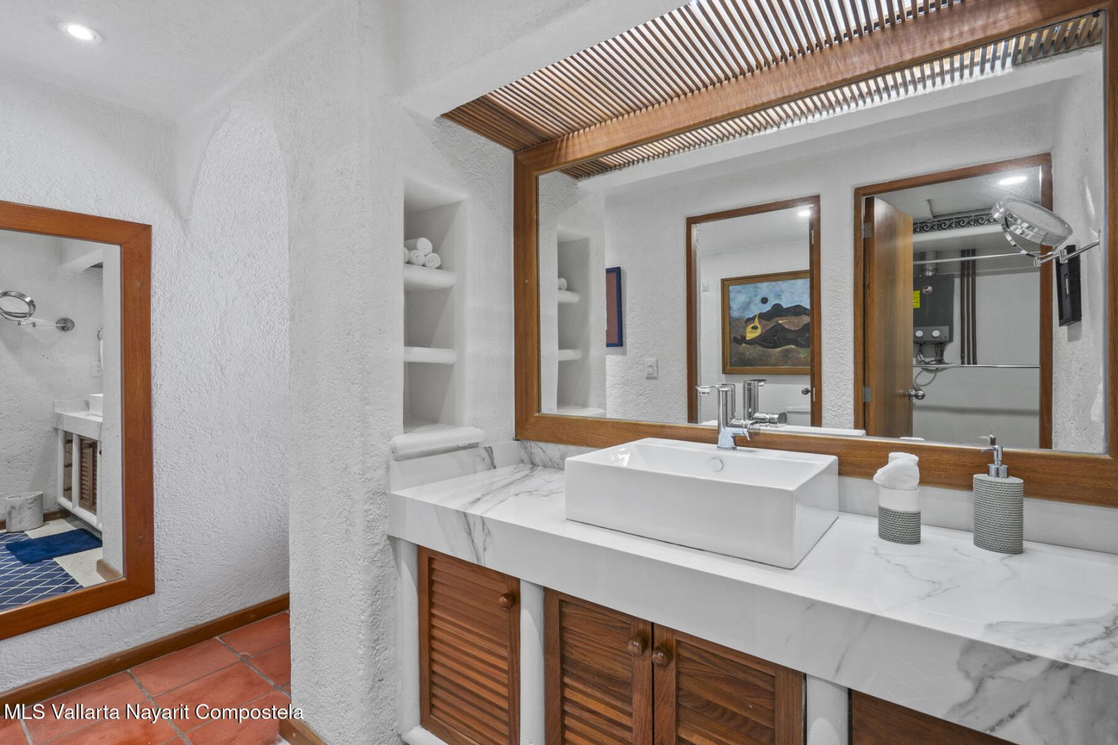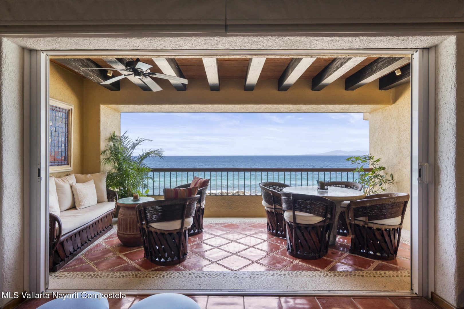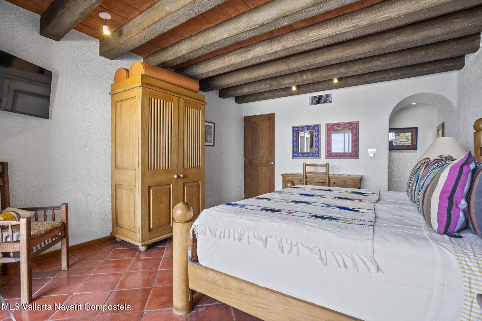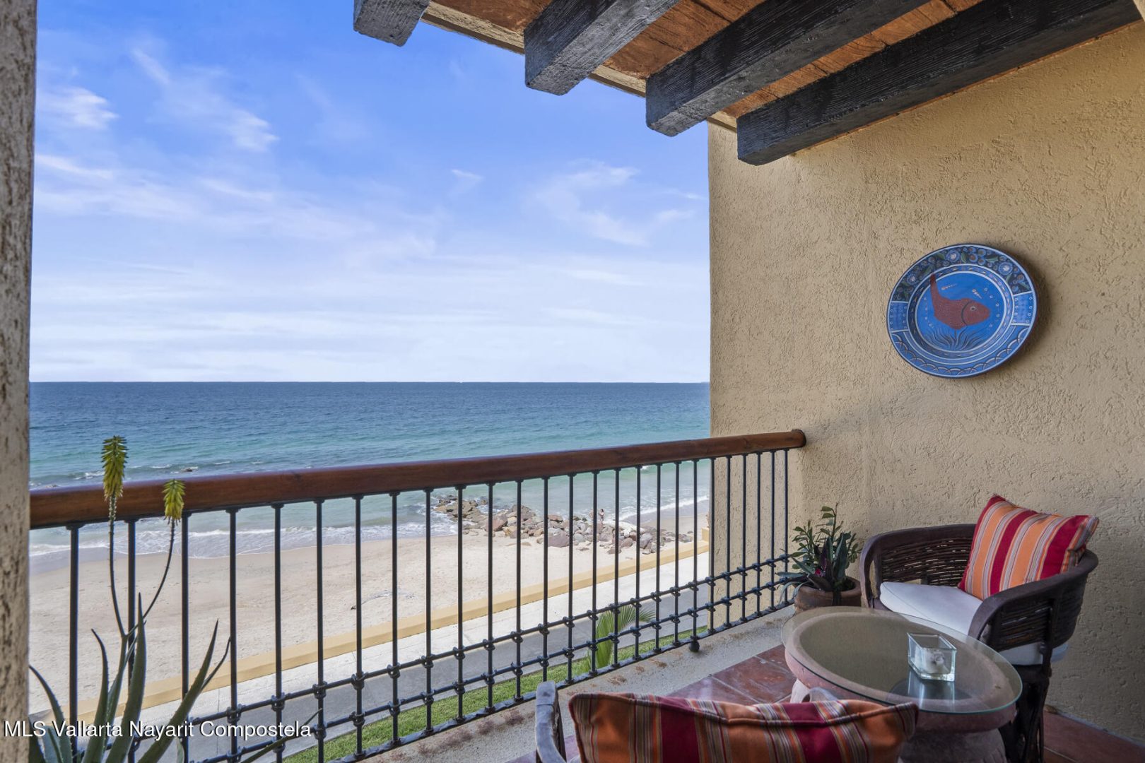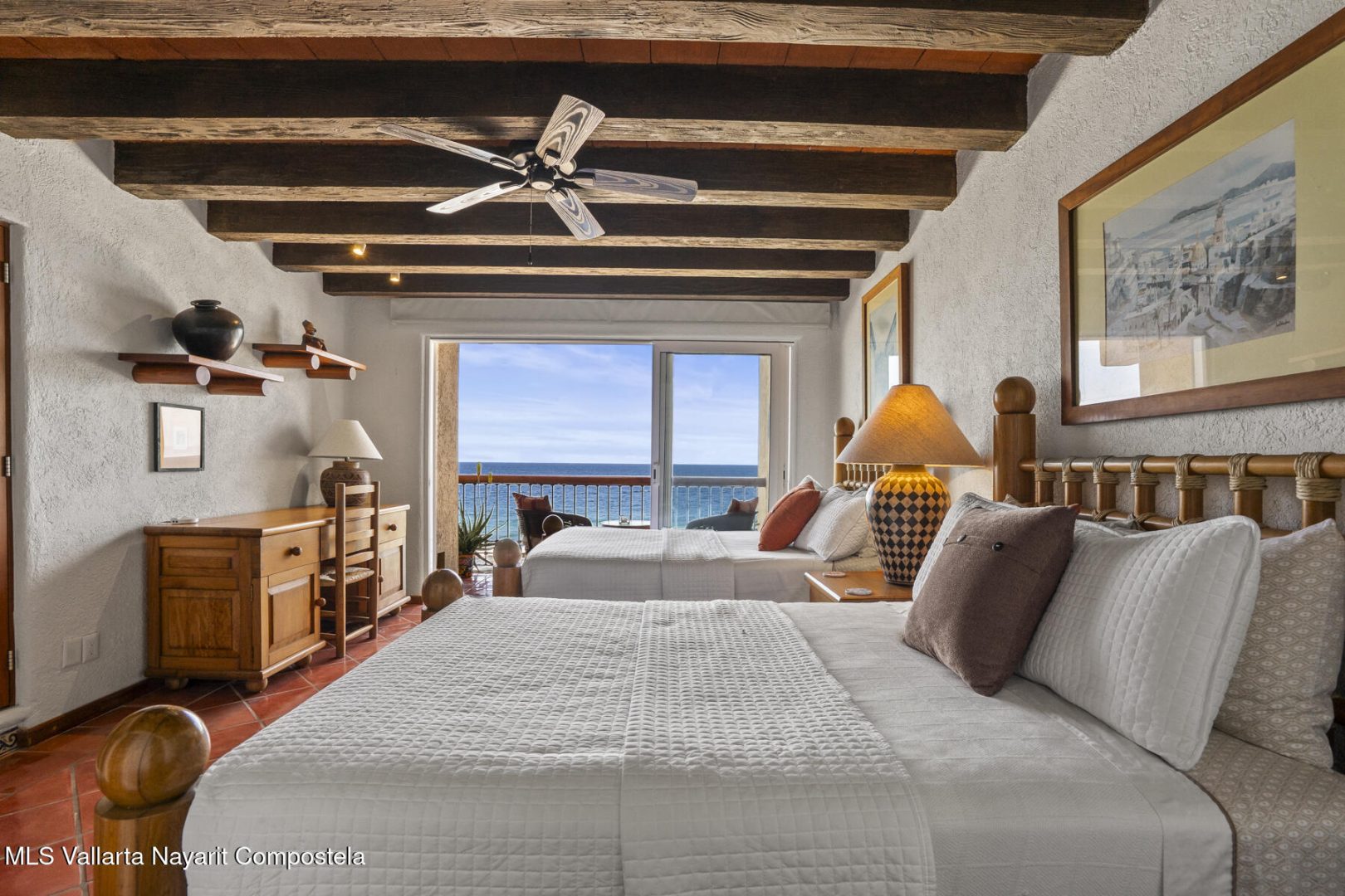 Residence 302 showcases timeless old-world Vallarta architecture with warm tones and quality finishes, including Saltillo tile flooring, solid tropical wood cabinetry, and exposed wooden beams that enhance its open-concept living spaces. The recently remodeled kitchen blends modern design with traditional Vallarta style, offering both functionality and harmony with the home’s original character. Both en-suite bedrooms feature private balconies with stunning views of the beach, Banderas Bay, Los Arcos, and the Sierra Madre Mountains. Common areas include a palapa Restaurant gym, lush gardens, and a large infinity pool, kids pool and a jacuzzi with access to the white sand beach.