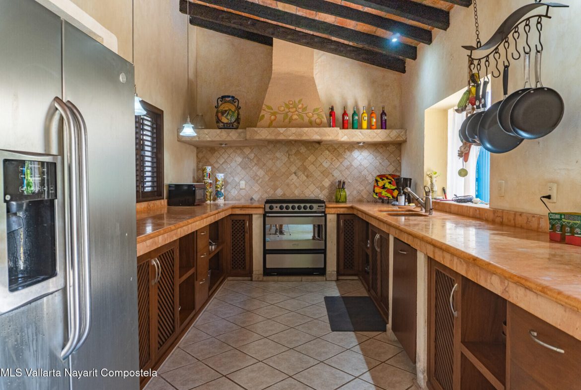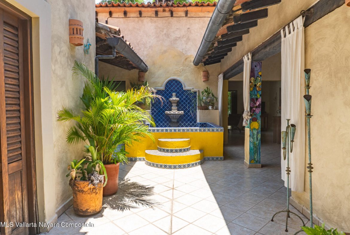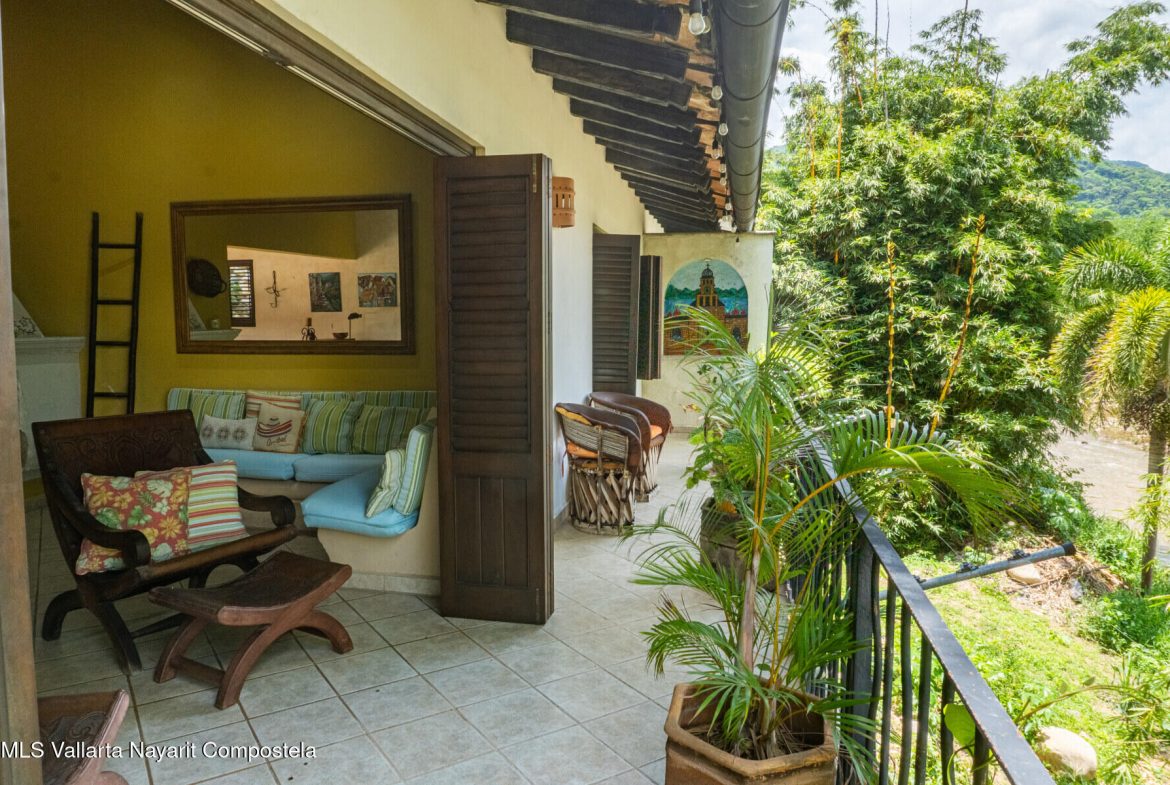 Casa tipo villa con detalles arquitectonicos mexicanos, techos de teja, columnas de madera y espacios abiertos. La terraza ofrece una hermosa vista al rio Cuale. Con acabados de estilo tradicional, la casa fue remodelada en 2007. estacionamiento con porton electrico. Solo hay dos villas que comparten el regimen de condominio. Excelente, ubicacion permite acceder facilmente a restaurantes, playas, centros nocturnos, mercados y diversas actividades, incluyendo la famosa zona romantica de Vallarta. Servicios contratados incluyen: CFE, agua de la ciudad a traves de Seapal y telefonia Telmex para servicio de internet.No hay cuota de Mnto, para una reparacion en area comun, se comparte el gasto con otro propietario.Para llegar a la Villa hay que bajar 34 escalones