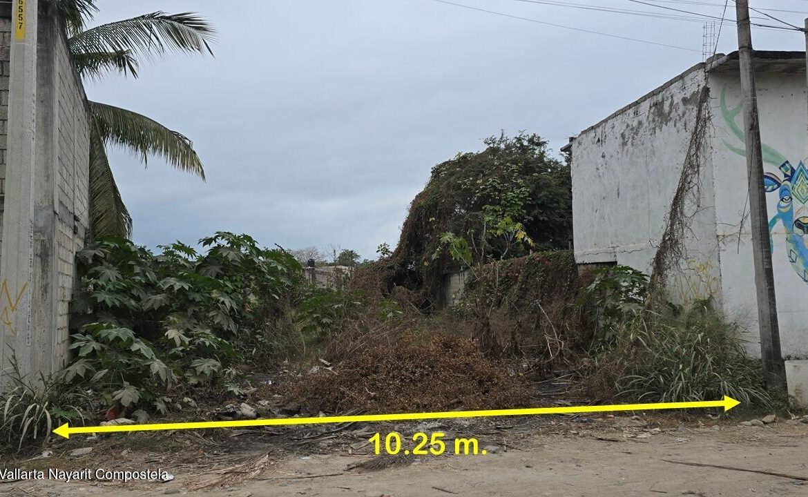 Terreno en venta en Mezcales, Bahia de Banderas, con uso de suelo mixto (habitacional o comercial), ubicado sobre calle Palmas entre el Crucero de Mezcales y Plaza Lago Real, a unas cuadras de la Carretera Federal 200. Cuenta con 480.79 m2 de superficie total, servicios de agua, drenaje y electricidad disponibles en la zona (aun no contratados).