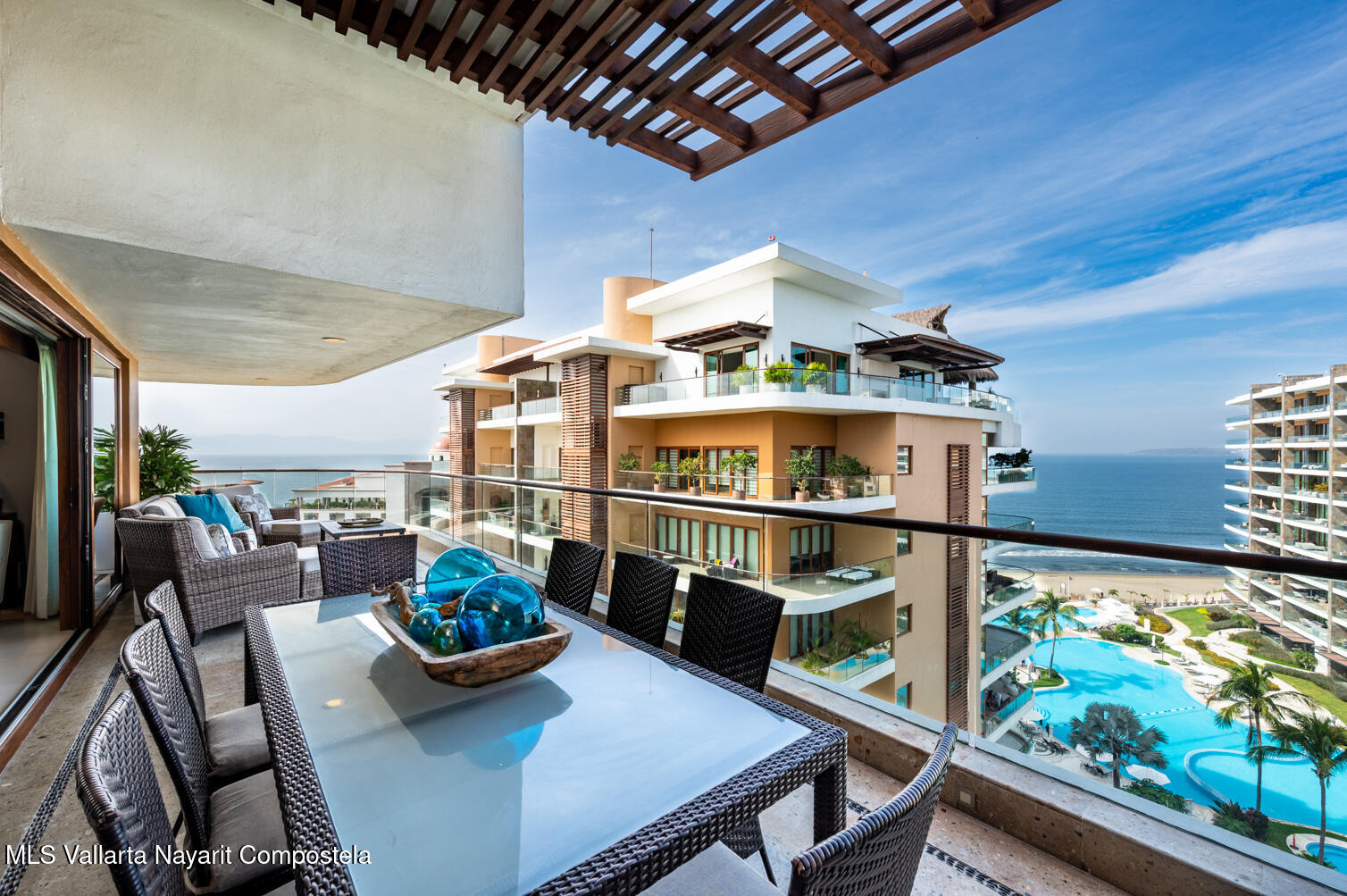 Ubicada en el piso 9 de la Torre 2, ofrece una hermosa vista al mar y a las areas comunes de LUMA. Cuenta con terrazas amplias, excelente ventilacion, techos de 3.30 m de altura y generosos espacios disenados para disfrutar en familia. LUMA es la comunidad mas exclusiva frente al mar en Nuevo Vallarta, con amenidades de primer nivel y mas de 120 metros de frente de playa, dos decks de playa, servicio de concierge, area de ninos, mini golf, cancha de padel, bistro, gimnasio con vista al mar, spa, seguridad 24 horas, elevadores, jardines y 2,000 m de alberca infinity climatizada. Ademas, incluye los privilegios de la membresia social en el Club Deportivo y Campo de Golf El Tigre. En LUMA, su familia disfrutara de un entorno seguro, respetuoso y exclusivo, rodeado de una comunidad afin.