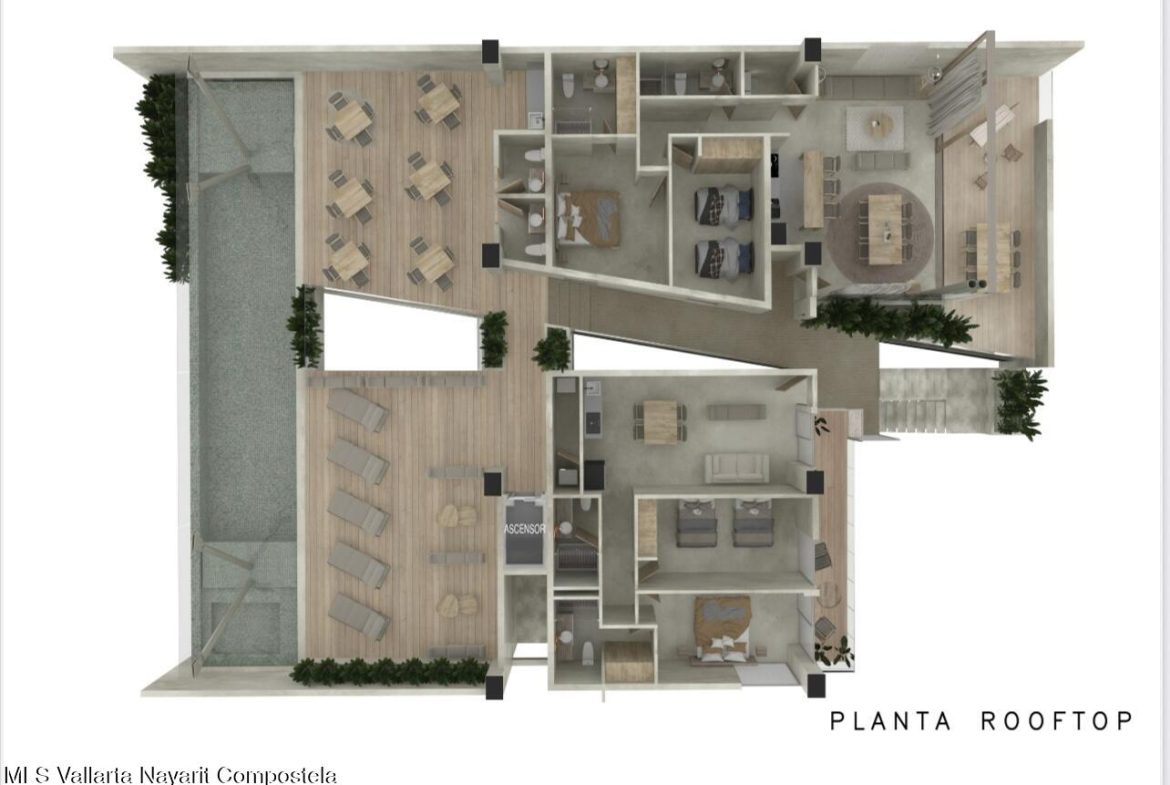 Discover MAIN STREET Bucerias, an exclusive new development located in the heart of Bucerias’ sought-after Golden Zone–just two blocks from the beach and steps to the vibrant downtown, with the best shops, cafes, and restaurants at your doorstep.This boutique project features 29 residences, including 2 stunning penthouses, each thoughtfully designed with natural tones and quality materials for a modern yet warm feel. A variety of floor plans are available, providing opportunities for both comfortable full-time living and high-yield rental income–with select units offering ocean views.Enjoy a welcoming lobby with concierge, ground-floor retail spaces, and rooftop amenities that include: Infinity pool & jacuzziExpansive sundeckBar & lounge area