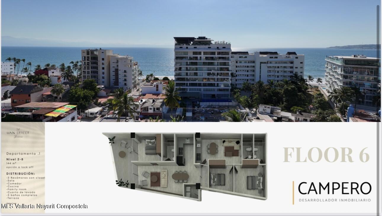 Discover MAIN STREET Bucerias, an exclusive new development located in the heart of Bucerias’ sought-after Golden Zone–just two blocks from the beach and steps to the vibrant downtown, with the best shops, cafes, and restaurants at your doorstep.This boutique project features 29 residences, including 2 stunning penthouses, each thoughtfully designed with natural tones and quality materials for a modern yet warm feel. A variety of floor plans are available, providing opportunities for both comfortable full-time living and high-yield rental income–with select units offering ocean views.Enjoy a welcoming lobby with concierge, ground-floor retail spaces, and rooftop amenities that include: Infinity pool & jacuzziExpansive sundeckBar & lounge area