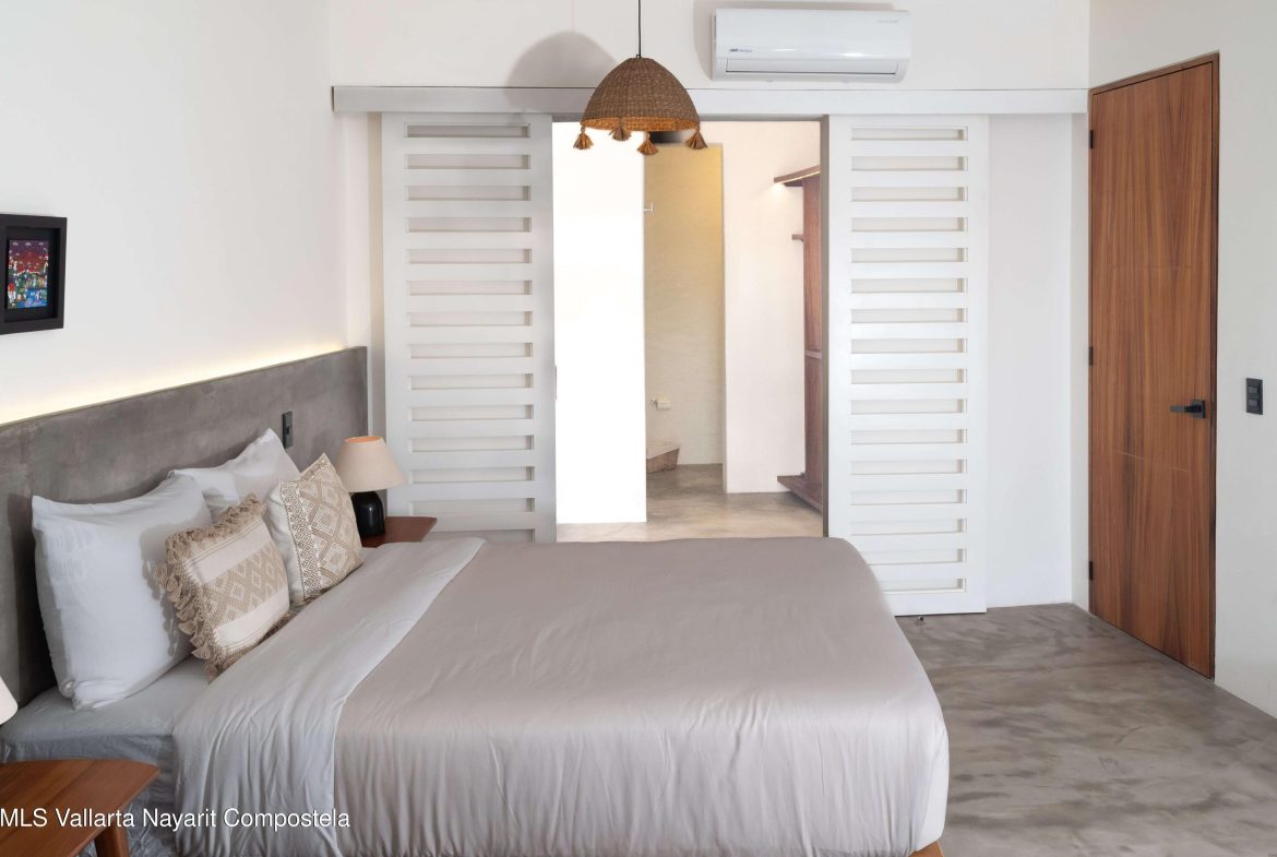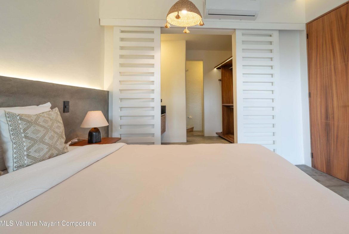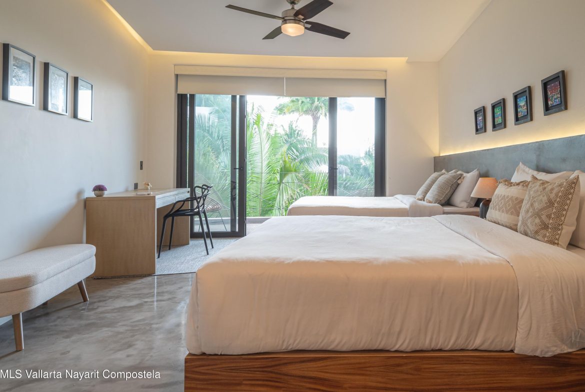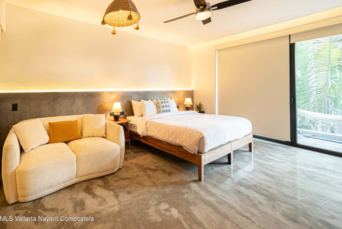 This beautiful condo is located in Attalea, a condo residence just a 7-minute walk to Sayulita’s best beach area on the north side. This brand-new, thoughtfully designed and modern condo on Sayulita’s peaceful north side offers the perfect balance: close enough to walk to the vibrant center, yet far enough to unwind in nature and quiet.The condo has some amazing features: Expansive Bedrooms & Living Area – Bright, comfortable spaces with modern furnishings and thoughtful touches throughout. Oversized Private Balcony – Lush jungle views and generous seating for morning coffee or sunset cocktails. Fully Equipped Kitchen – High-end appliances, quality cookware, and a stunning parota wood dining table on the private deck. Reverse Osmosis Filtered Water