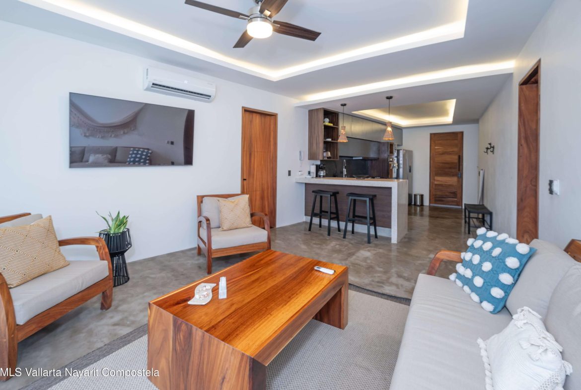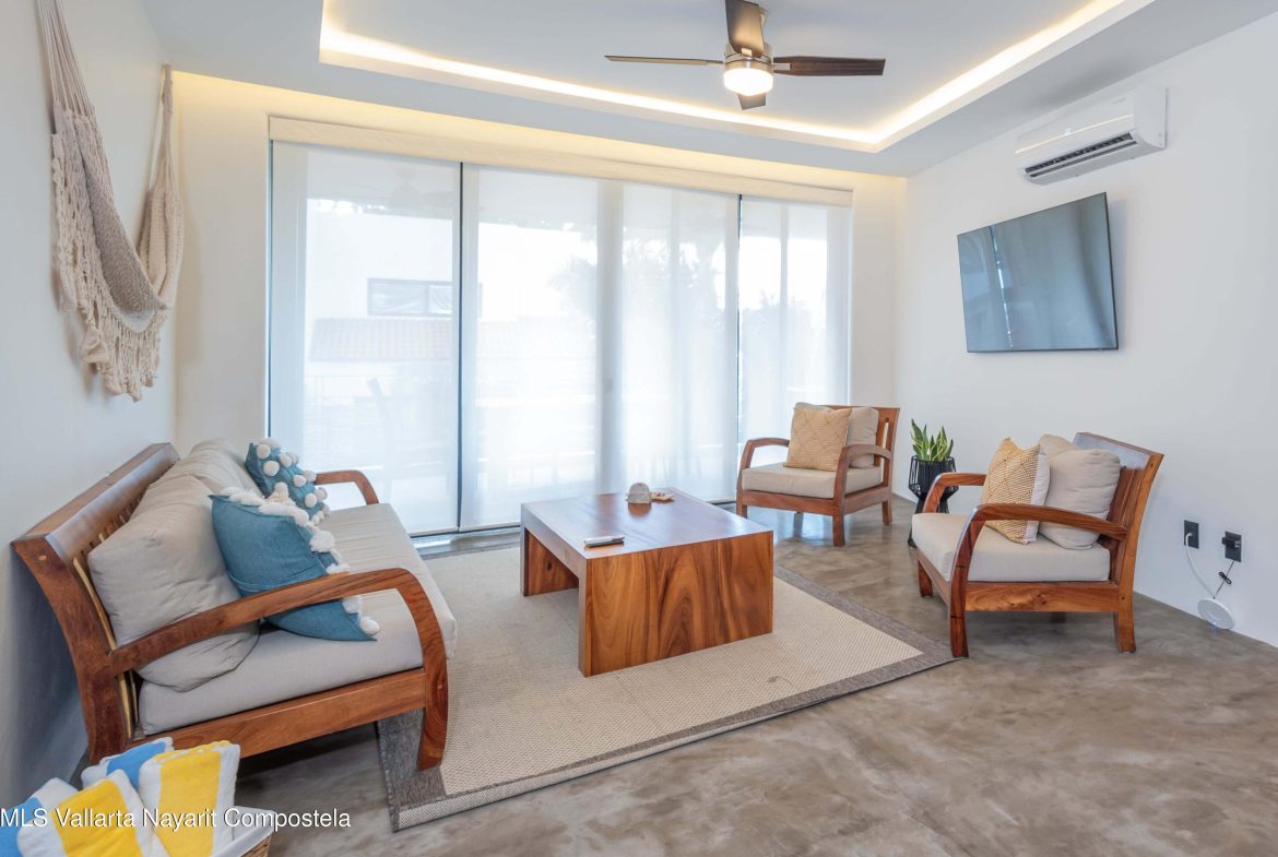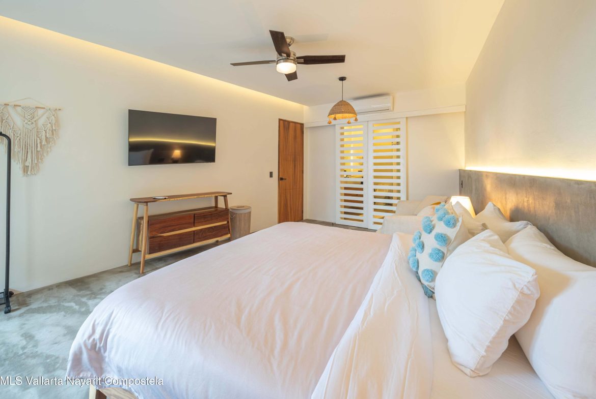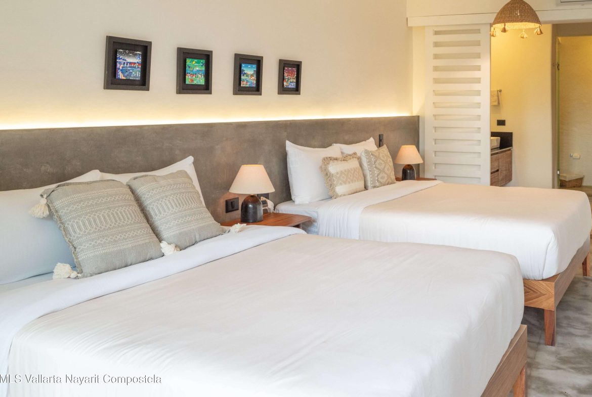This beautiful condo is located in Attalea, a condo residence just a 7-minute walk to Sayulita’s best beach area on the north side. This brand-new, thoughtfully designed and modern condo on Sayulita’s peaceful north side offers the perfect balance: close enough to walk to the vibrant center, yet far enough to unwind in nature and quiet.The condo has some amazing features: Expansive Bedrooms & Living Area – Bright, comfortable spaces with modern furnishings and thoughtful touches throughout. Oversized Private Balcony – Lush jungle views and generous seating for morning coffee or sunset cocktails. Fully Equipped Kitchen – High-end appliances, quality cookware, and a stunning parota wood dining table on the private deck. Reverse Osmosis Filtered Water