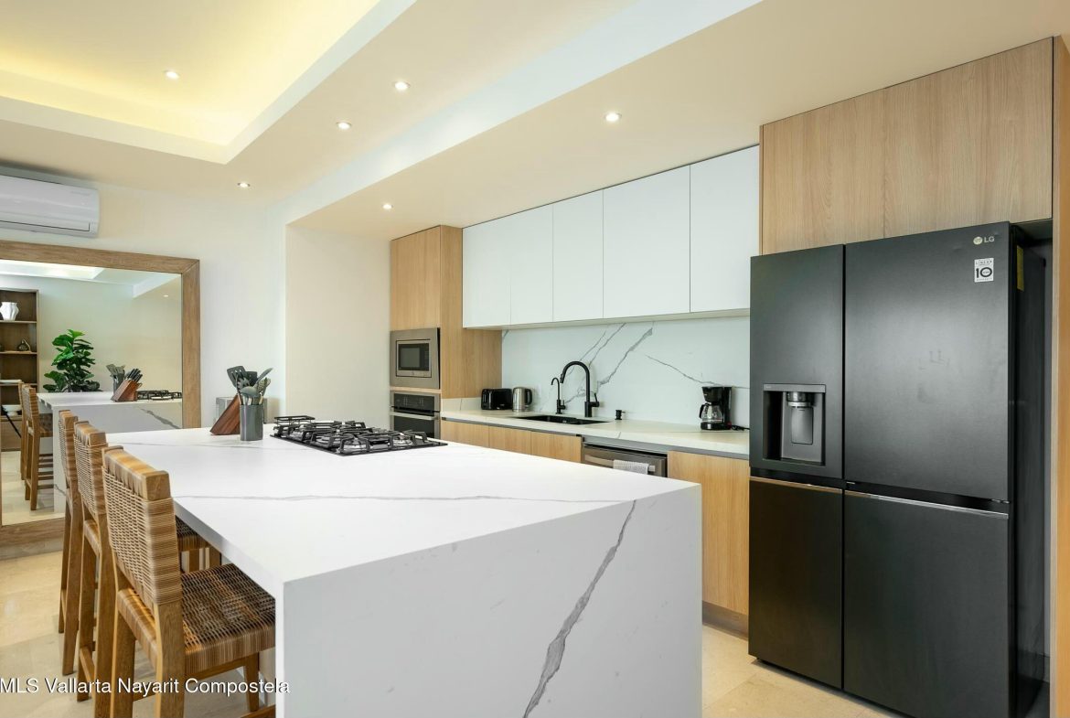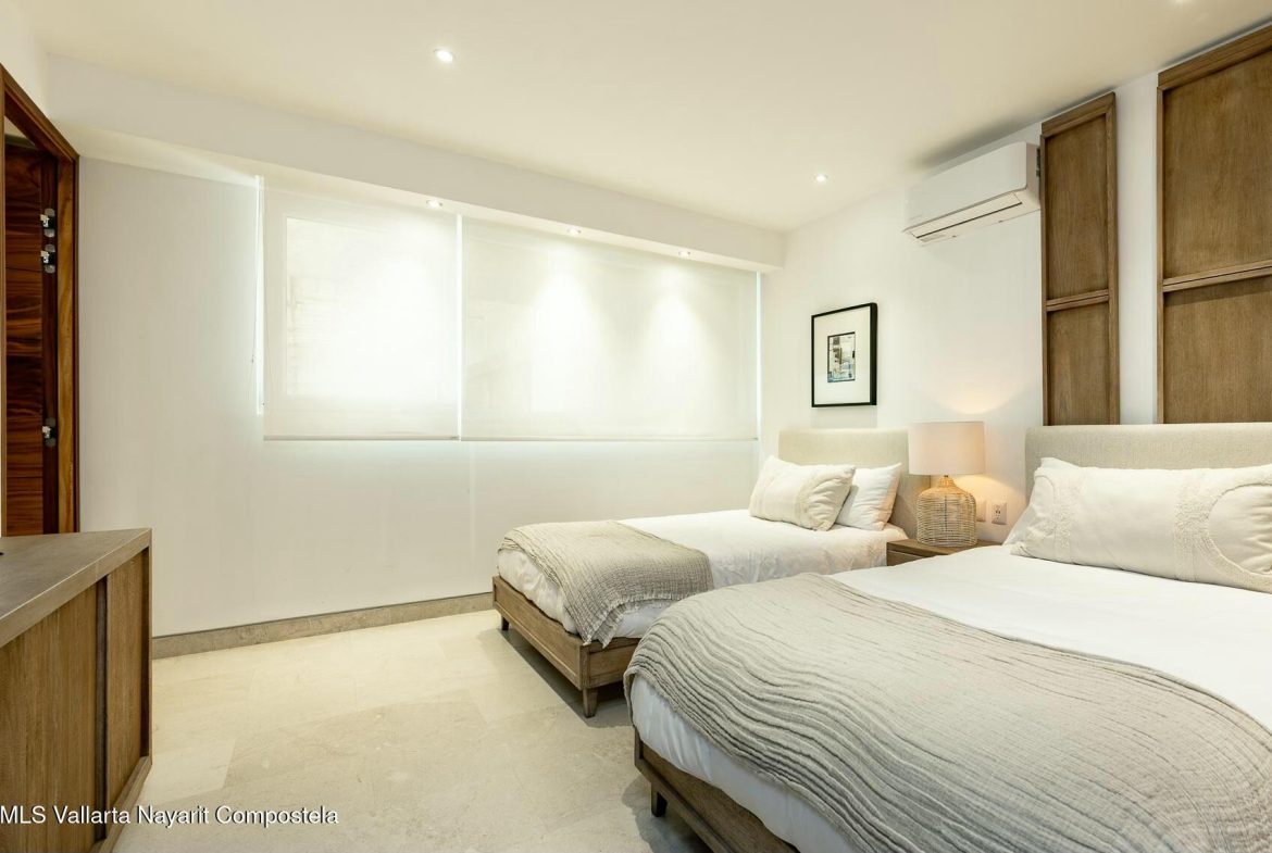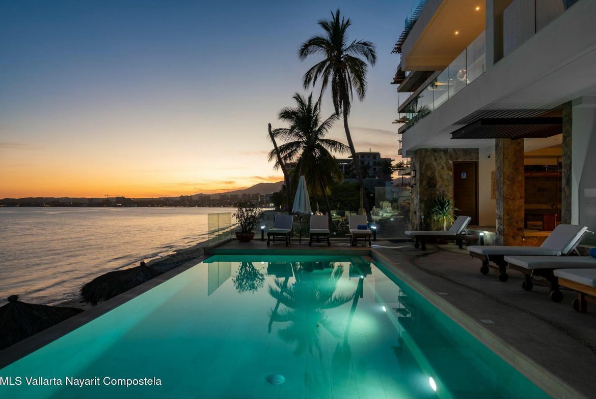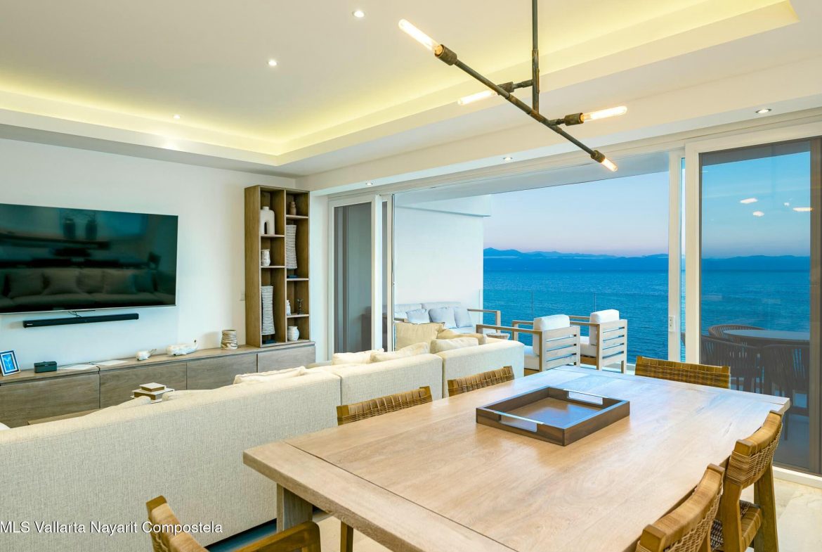 Bienvenido a Marazul ubicado frente al mar justo en el extremo norte de Bucerias a solo 30 minutos del aeropuerto de Puerto Vallarta. En una torre de solo 23 unidades te brinda la privacidad y el descanso que mereces. Departamento de 186 m2 cuenta con 2 amplias habitaciones mas un estudio, ademas dos banos completos en cada habitacion y medio bano en sala y comedor. Completamente amueblado con un gusto exquisito listo para ser habitado. Una vista imperdible en la terraza te brinda la sensacion de estar en el mar, ademas en un complejo que tiene todo para que pases momentos inolvidables, Plus alberca climatizada con acceso directo a la playa y ademas alberca en roof top con la mejor vista. Cuenta con estacionamiento y bodega subterraneo.