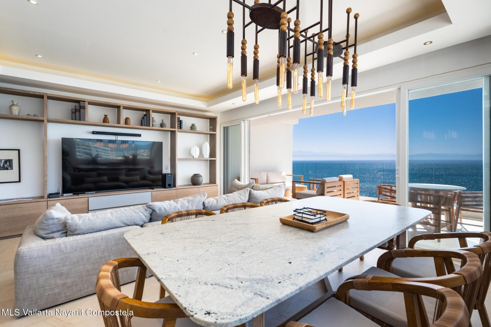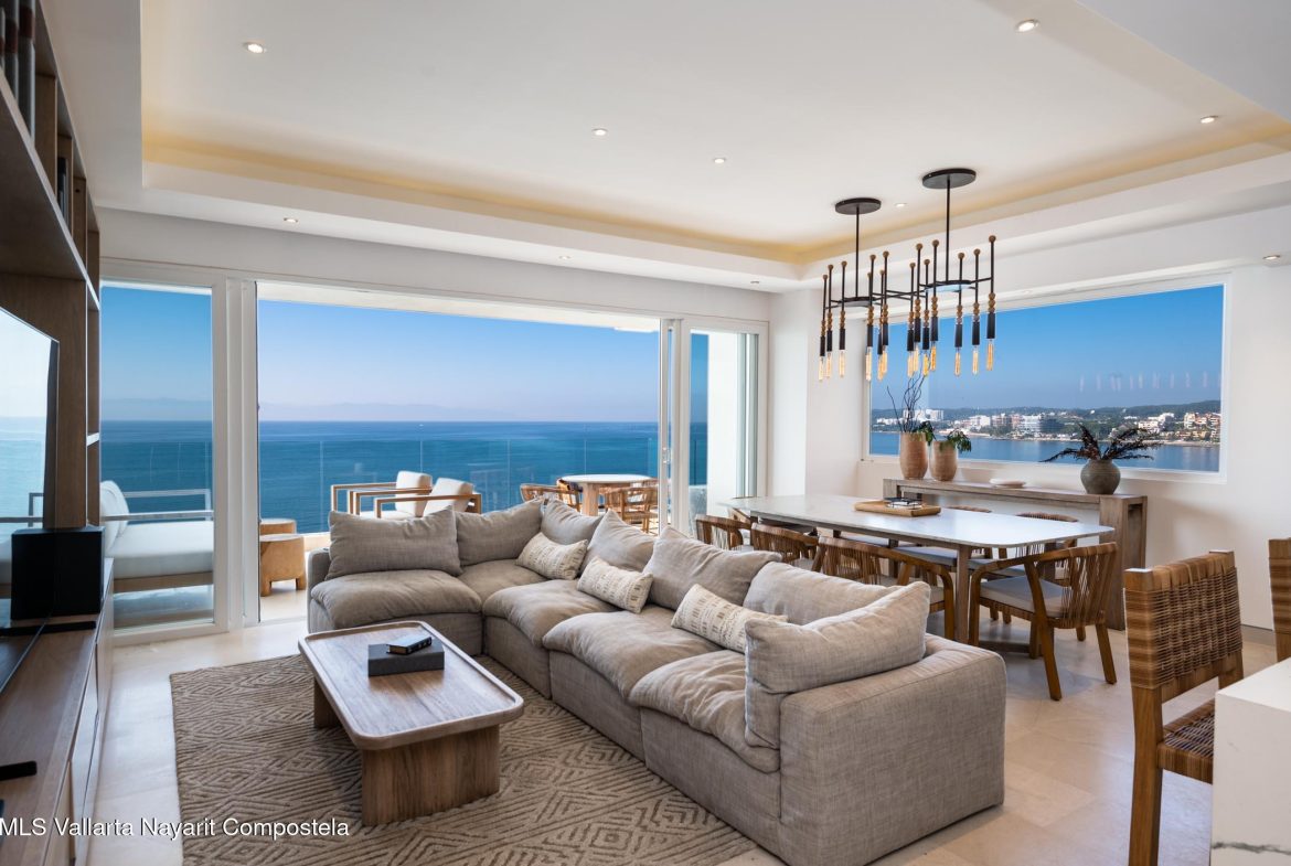 Amplio departamento de 3 recamaras ubicado en Mar Azul Bucerias, con una superficie de 186 m. La propiedad cuenta con una privilegiada distribucion en esquina que permite disfrutar de impresionantes vistas al mar tanto frontales como laterales, generando una experiencia envolvente unica.El departamento se entrega completamente equipado y amueblado, con acabados de alta calidad, espacios abiertos y una excelente integracion entre area interior y terraza. Sus amplias recamaras, cocina totalmente equipada y areas sociales bien distribuidas lo convierten en una opcion ideal tanto para uso personal como para inversion en rentas vacacionales.Propiedad turnkey con decoracion de alto nivel, lista para habitar o generar ingresos desde el primer dia.