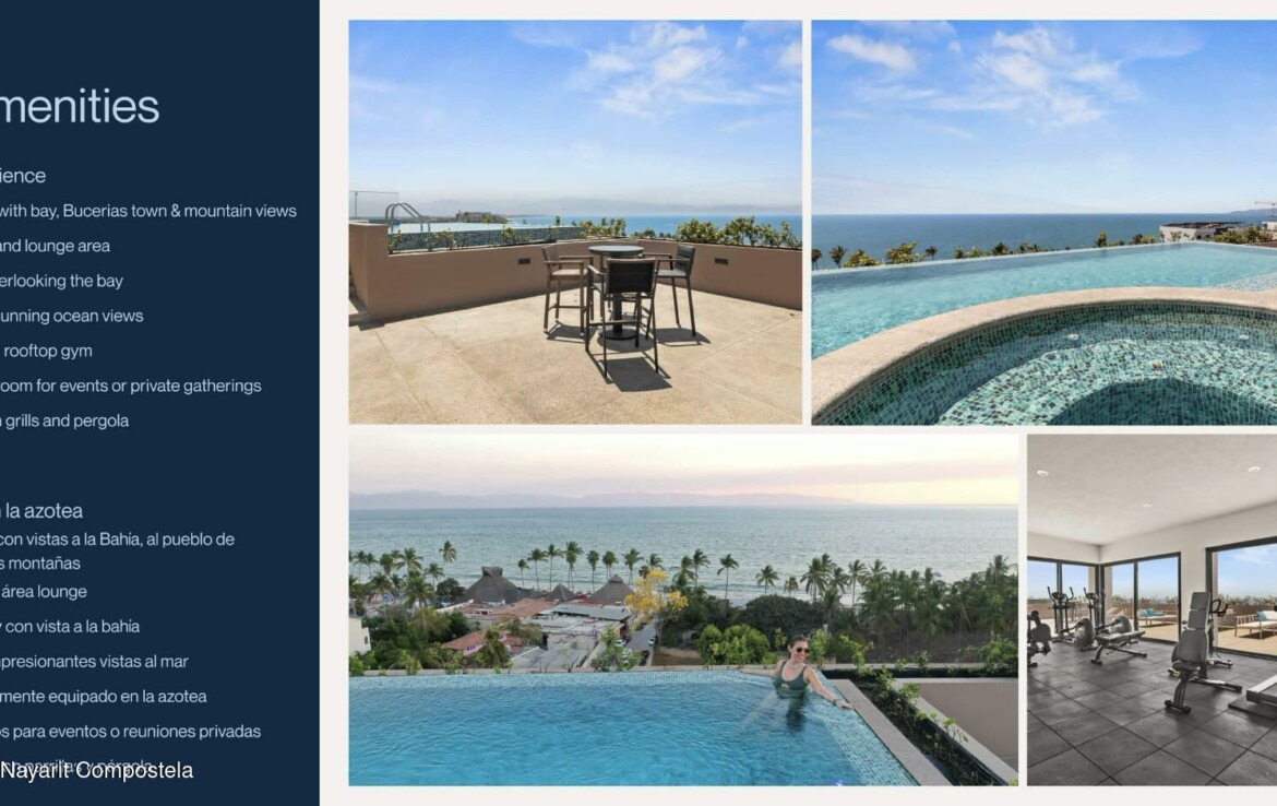 A unique low-density real estate development with luxury amenities, ready to move in, located in the heart of the magical Golden Zone of Bucerias. Architecture inspired by a sailboat, with a curved and organic design that maximizes views and natural ventilation. A natural oasis enhanced by organic landscaping. The unit includes 1 assigned parking space.
