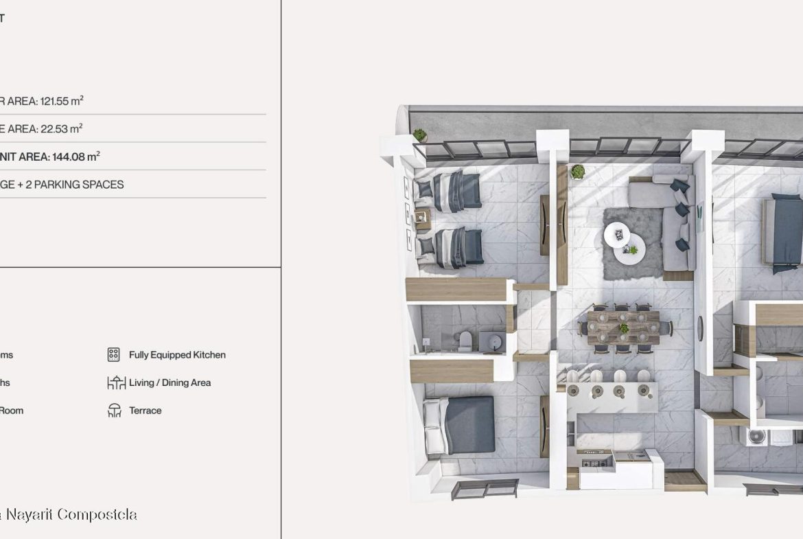 A unique low-density real estate development with luxury amenities, ready to move in, located in the heart of the magical Golden Zone of Bucerias. Architecture inspired by a sailboat, with a curved and organic design that maximizes views and natural ventilation. A natural oasis enhanced by organic landscaping. The unit includes 1 assigned parking space.