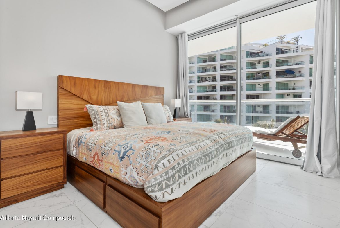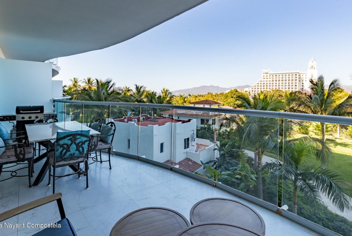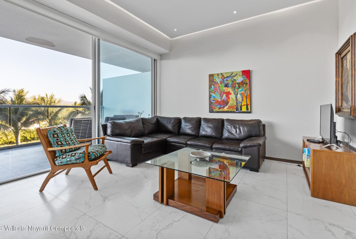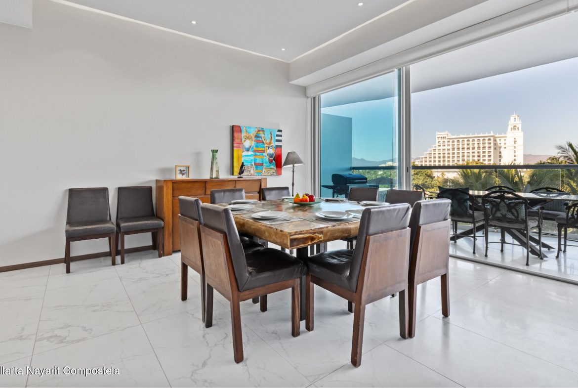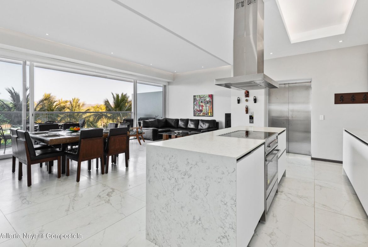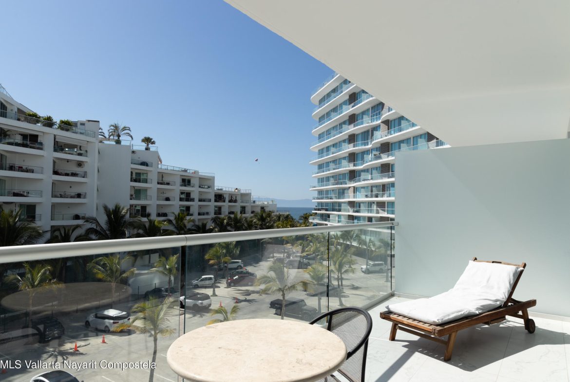 This trendy, stylish, and effortlessly cool 3rd-floor residence blends modern sophistication with resort-style luxury, offering peek views of the bay, lush gardens, and surrounding mountains. Designed for both relaxation and entertaining, the open-concept layout features a high-end chef’s kitchen with a waterfall-edge granite island, sleek stainless-steel appliances, and custom cabinetry, all complemented by a stylish bar seating area. The bright and airy living and dining spaces flow onto an oversized covered terrace, a private retreat framed by swaying palms and tropical gardens. Two restful and serene bedrooms open onto a spacious private terrace, capturing territorial and peek ocean views.