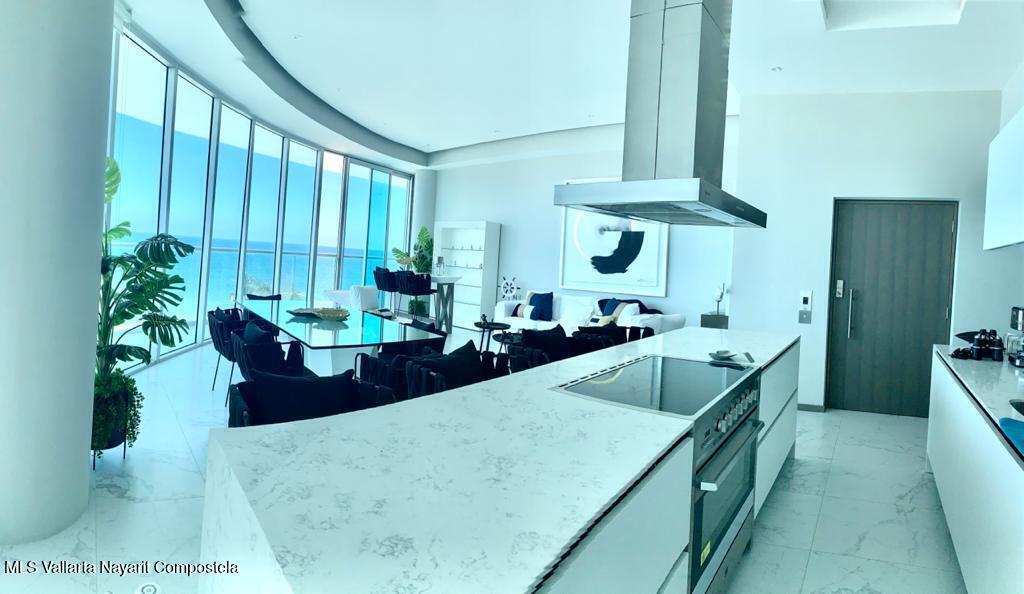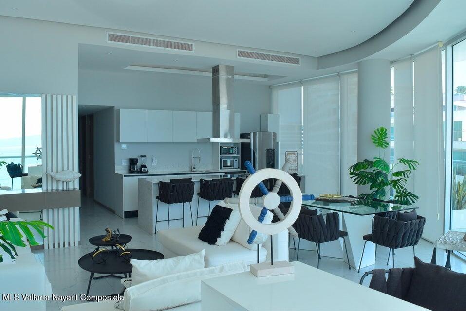 Live the coastal dream at Maritima Playa Flamingos. This 199 m, 3-bed/3-bath condo showcases an open living area framed by floor-to-ceiling glass and sweeping ocean vistas. Your private elevator opens directly into the residence for unmatched ease and discretion. Contemporary finishes, a fluid layout, and breezy terraces create a refined, relaxed atmosphere. Two dedicated parking spaces are included.Enjoy resort-style amenities: a minimalist lobby with 24/7 security, an international restaurant, bar, and cevicheria, lush ground-level pools, and a rooftop terrace with an infinity pool overlooking the Pacific. A prime choice for a primary residence or a luxury rental investment in sought-after Banderas Bay.