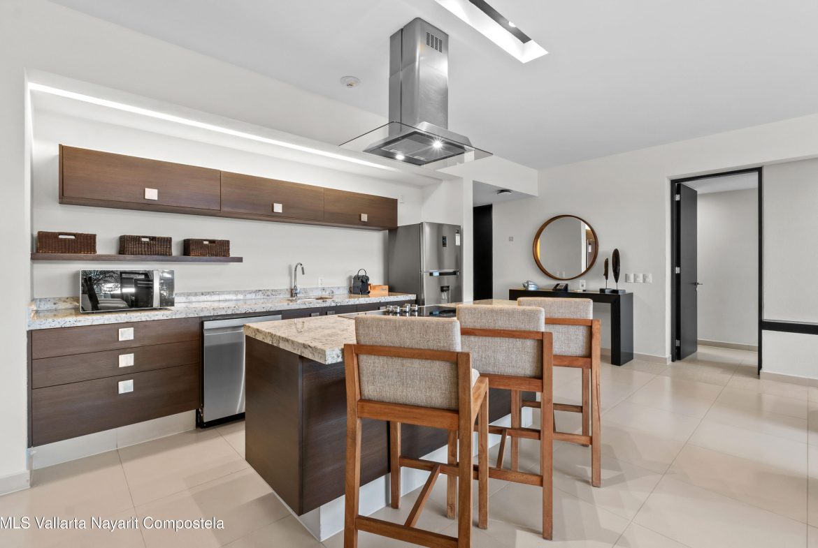Descubre una residencia excepcional en Marival Distinct, uno de los desarrollos mas exclusivos y prestigiosos de la Riviera Nayarit. Este elegante departamento fusiona lujo contemporaneo con un estilo de vida relajado y sofisticado, rodeado de jardines exuberantes y un diseno arquitectonico que invita a la serenidad total.La unidad ofrece una distribucion amplia y funcional, con cocina gourmet, comedor, sala de estar de exquisito diseno y dos recamaras privadas que garantizan confort y privacidad. Pero lo que realmente distingue a Marival Distinct es la experiencia unica que ofrece a sus residentes: desde room service disponible las 24 horas y restaurantes de alta gastronomia, hasta un club de playa exclusivo con alberca infinity frente al mar, jacuzzis y servicio impecable. El desa
