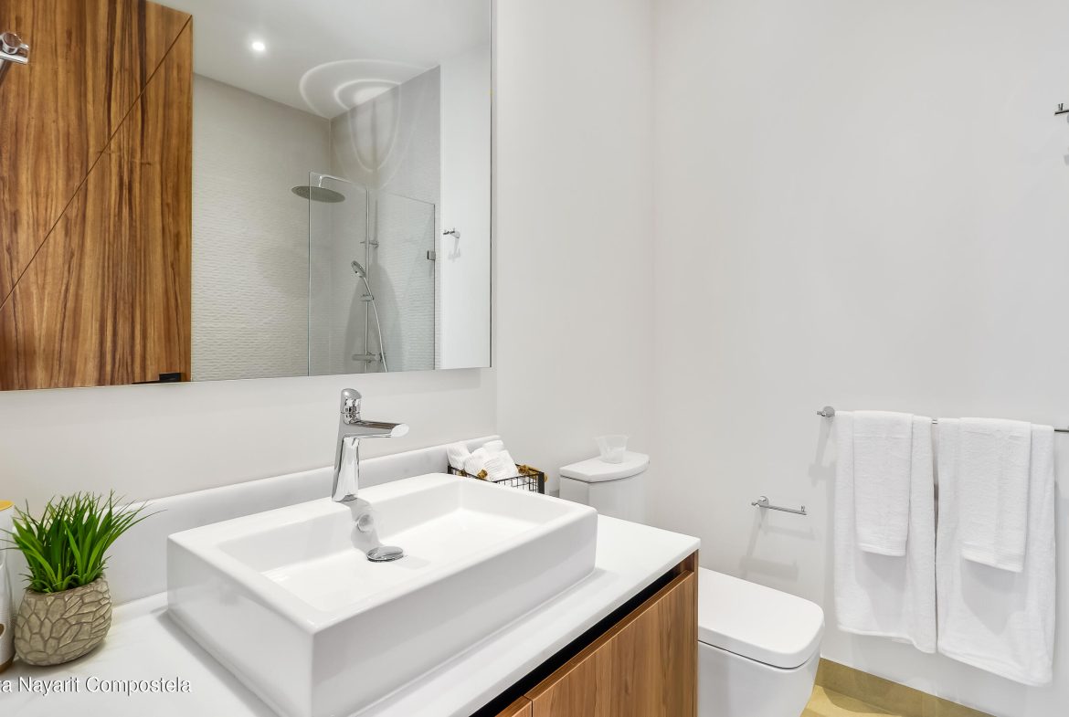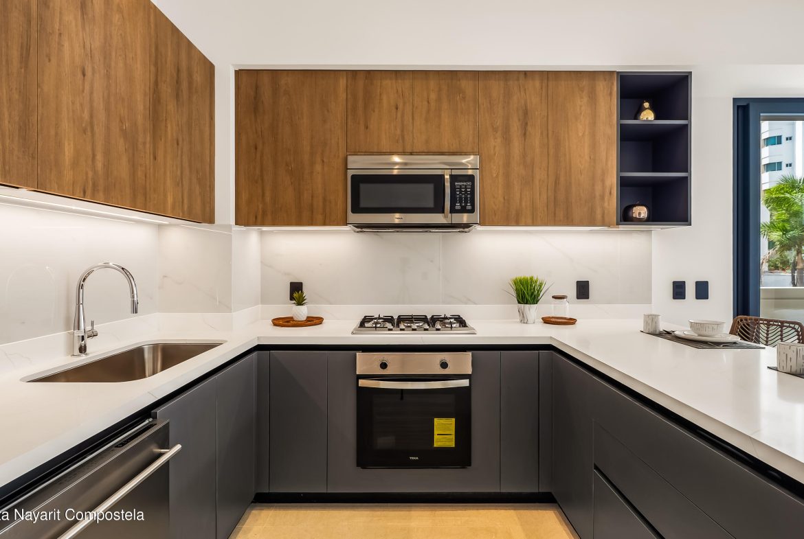 Description: English below. Ya construido y listo para ti! Bonita apartamento de 2 recamara con encimeras de cocina de cuarzo y terraza. Desarrollo boutique de 15 condominios, piscina infinita climatizada en la azotea con vistas panoramicas, gimnasio al aire libre, ascensor, lobby, seguridad 24-7. 60 pasos de la playa, 2 cuadras del centro, 1 cuadra de la Plaza Los Amores. Sin terraza pero un opcion para construido una terraza ($). Contacto hoy!Already built and ready for you! Gorgeous corner 2 bedroom with quartz kitchen countertops. Boutique development 15 condos, rooftop heated infinity pool with panoramic views, open air gym, elevator, 24-7 security, lobby, secured entry. 60 steps to the beach, 2 blocks to downtown, 1 block to Plaza. Option to add balcony ($). Contact us today!