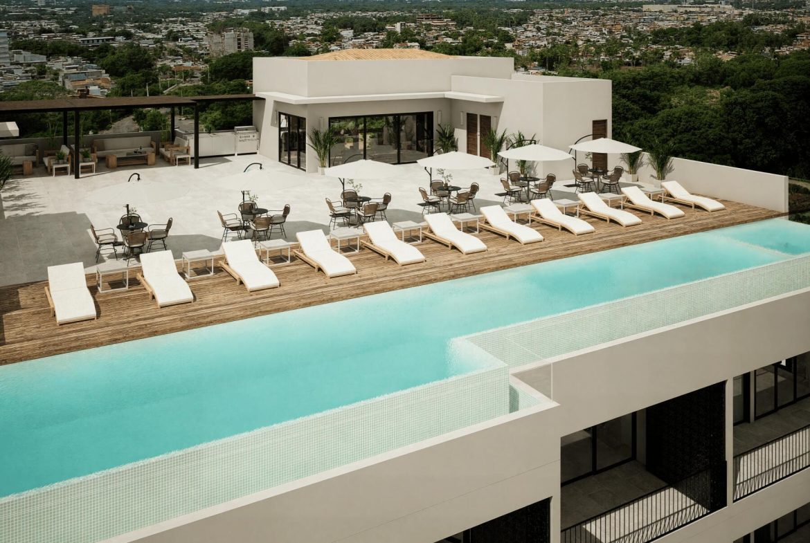 MCS FLUVIAL nace en el corazon de Fluvial Vallarta. Un punto donde la ciudad se siente cerca, pero la vida se disfruta sin prisa. Su torre unica de 7 niveles reune solo 42 residencias, creadas para quienes buscan privacidad, orden y un estilo de vida moderno. La ubicacion lo cambia todo: Escuelas, hospitales, La Isla, Costco, Marina Vallarta y el aeropuerto a minutos. Todo lo importante, sin complicaciones. En el rooftop, la experiencia sube de nivel: Alberca, jacuzzi, lounge, gimnasio y espacios disenados para relajarte sin salir de casa. Cada unidad incluye electrodomesticos premium y acabados pensados para durar. Alturas de 2.95 m, muros de block y eficiencia en cada detalle. Fluvial Vallarta te ofrece tranquilidad, infraestructura impecable y una plusvalia que sigue creciendo.