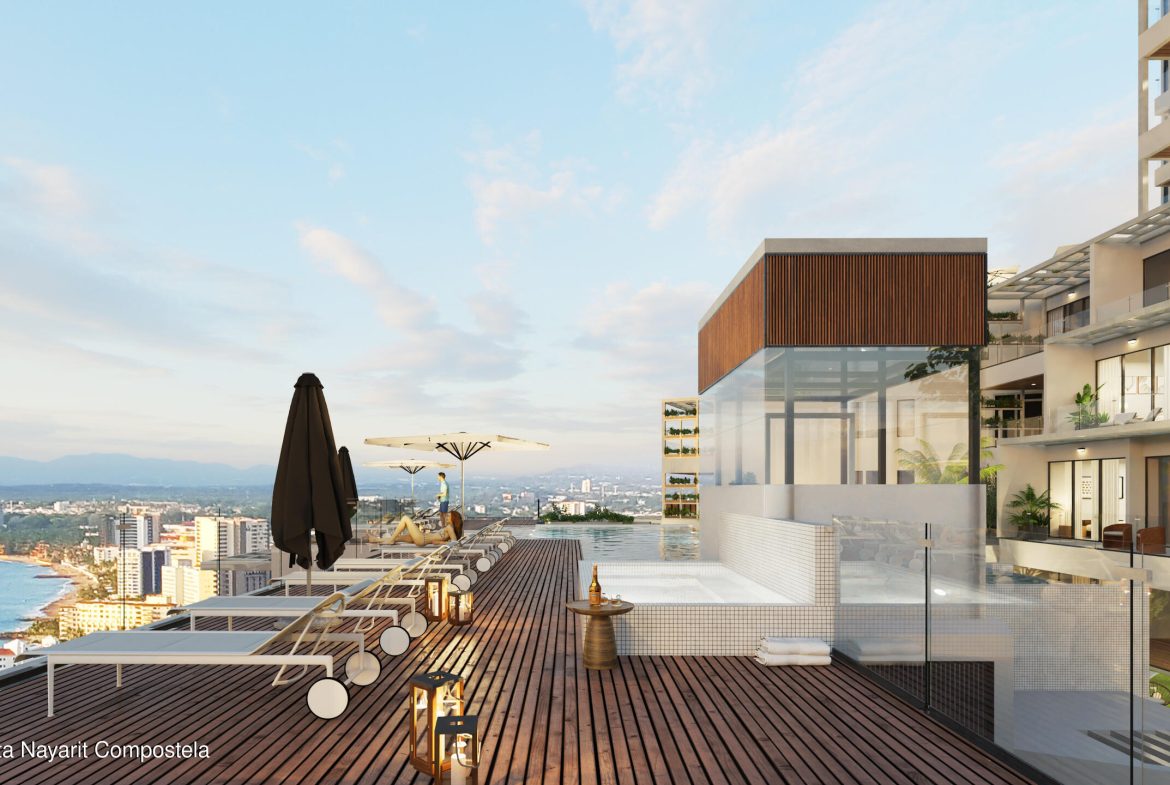 Disfruta de impresionantes atardeceres, amaneceres, fuegos artificiales y mas, con una espectacular vista panoramica de la bahia. MDY es, sin duda, el desarrollo mas exclusivo en el centro de Puerto Vallarta, destacando por su sistema de construccion en concreto y acero, disenado para mitigar el impacto del cambio climatico. Ademas, somos el unico desarrollo en la zona con certificacion internacional LEED (edificacion sustentable), reafirmando nuestro compromiso con el medio ambiente.Ubicado en la colina y rodeado de exuberante selva, MDY ofrece vistas inigualables de toda la bahia, el escenario perfecto para disfrutar la belleza de Puerto Vallarta. Nuestros finos acabados interiores de marmol y cuarzo, junto con nuestro equipamiento certificado, nos convierte