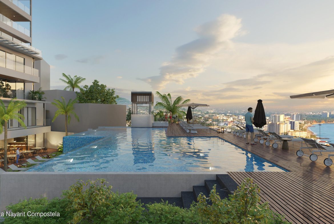 Disfruta de impresionantes atardeceres, amaneceres, fuegos artificiales y mas, con una espectacular vista panoramica de la bahia. MDY es, sin duda, el desarrollo mas exclusivo en el centro de Puerto Vallarta, destacando por su sistema de construccion en concreto y acero, disenado para mitigar el impacto del cambio climatico. Ademas, somos el unico desarrollo en la zona con certificacion internacional LEED (edificacion sustentable), reafirmando nuestro compromiso con el medio ambiente.Ubicado en la colina y rodeado de exuberante selva, MDY ofrece vistas inigualables de toda la bahia, el escenario perfecto para disfrutar la belleza de Puerto Vallarta. Nuestros finos acabados interiores de marmol y cuarzo, junto con nuestro equipamiento certificado, nos convierte