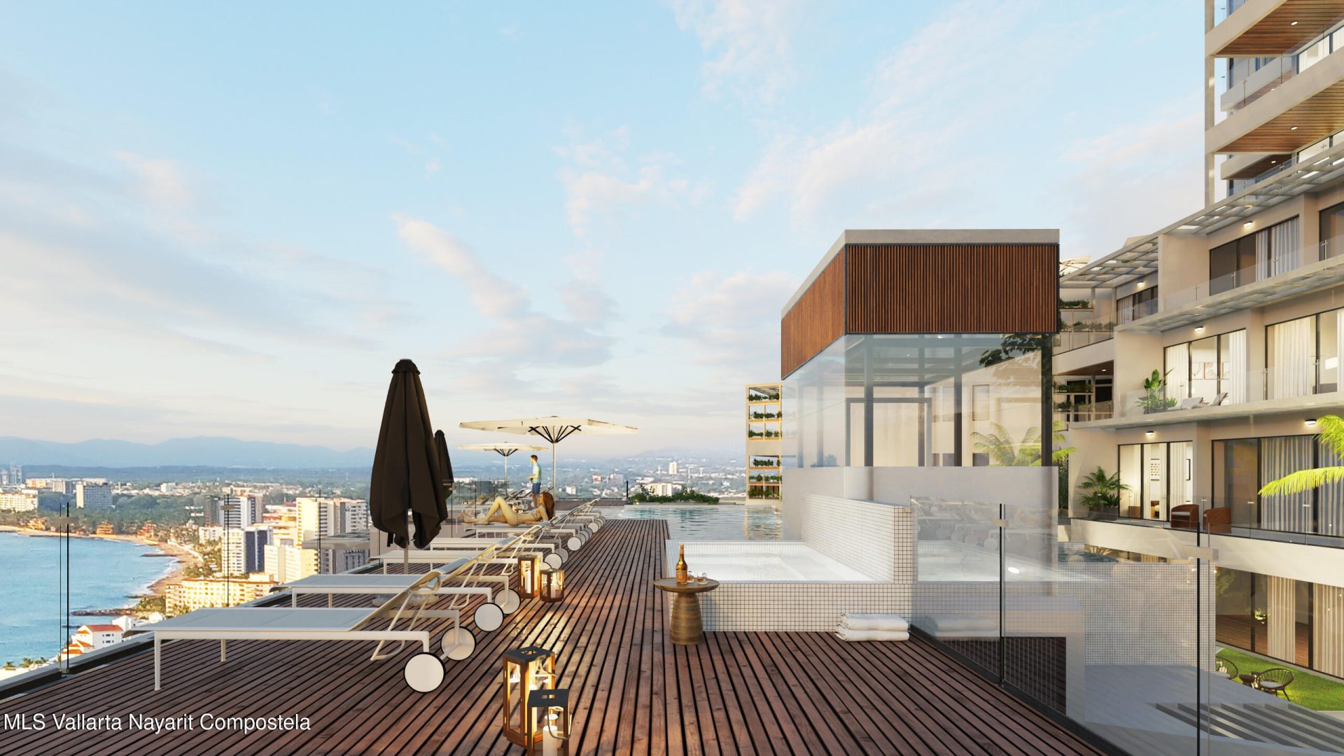 Disfruta de impresionantes atardeceres, amaneceres, fuegos artificiales y mas, con una espectacular vista panoramica de la bahia. MDY es, sin duda, el desarrollo mas exclusivo en el centro de Puerto Vallarta, destacando por su sistema de construccion en concreto y acero, disenado para mitigar el impacto del cambio climatico. Ademas, somos el unico desarrollo en la zona con certificacion internacional LEED (edificacion sustentable), reafirmando nuestro compromiso con el medio ambiente.Ubicado en la colina y rodeado de exuberante selva, MDY ofrece vistas inigualables de toda la bahia, el escenario perfecto para disfrutar la belleza de Puerto Vallarta. Nuestros finos acabados interiores de marmol y cuarzo, junto con nuestro equipamiento certificado, nos convierte