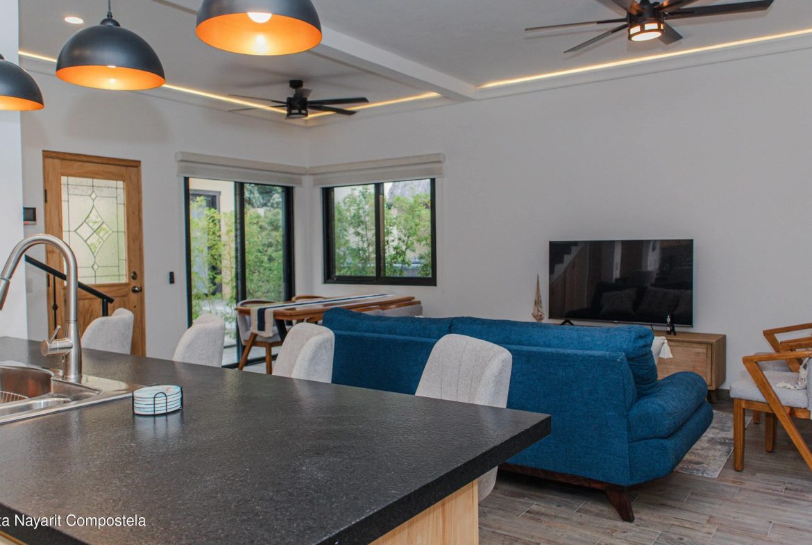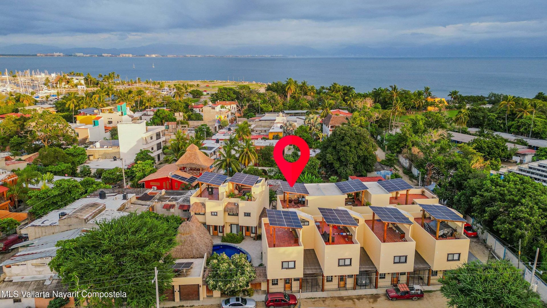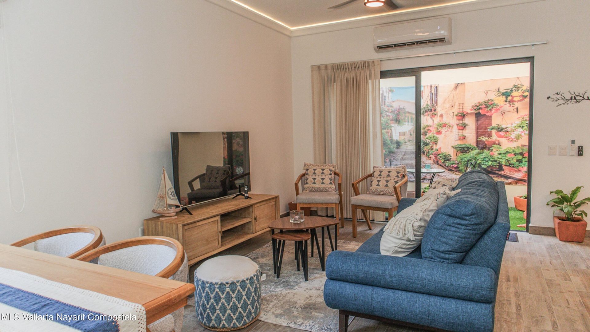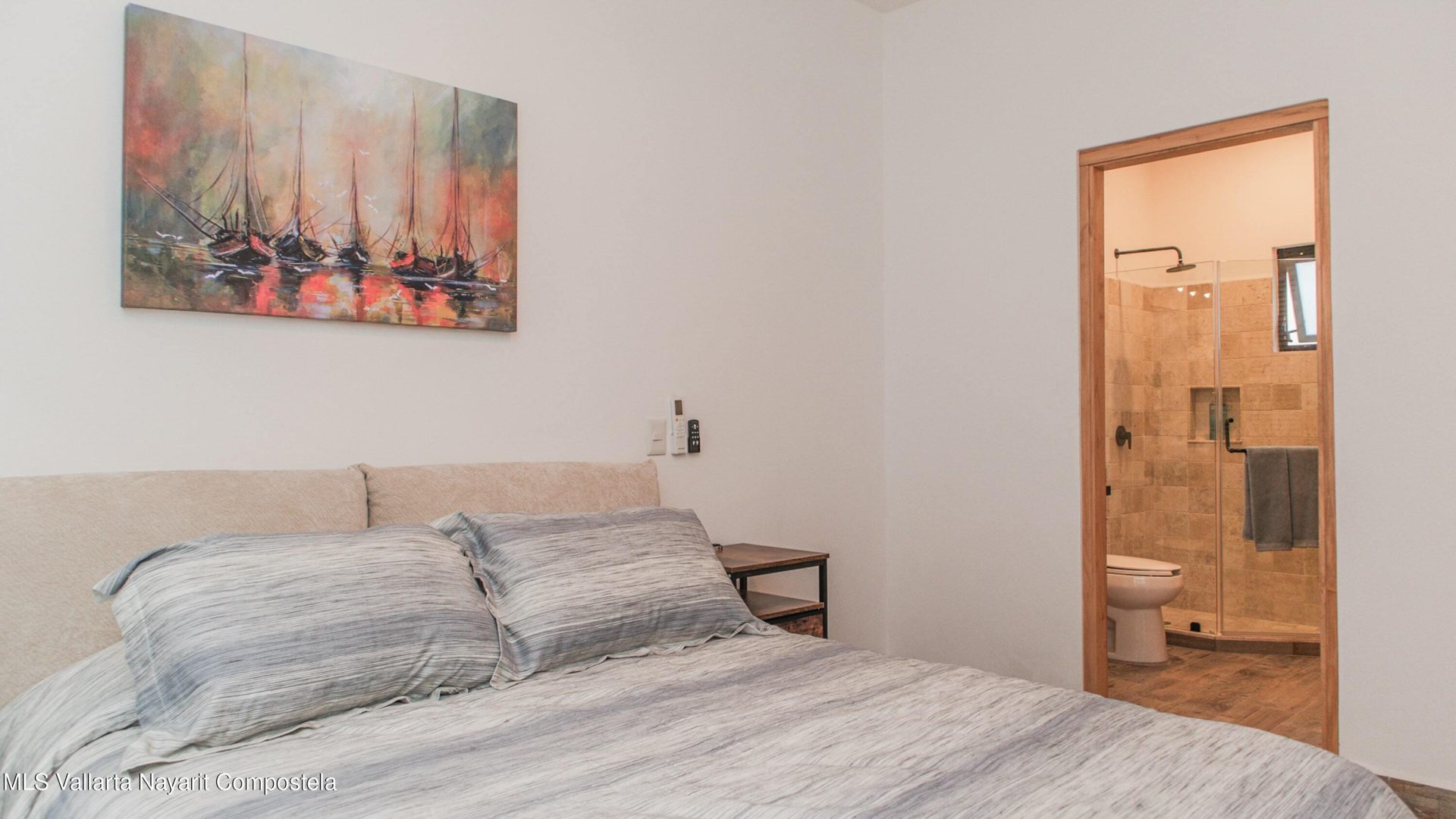 Casa Azul is a boutique 2-bed/2.5-bath home in a gated 9-unit community, just 3 blocks from La Cruz Marina and beach. Features include a private garage, full kitchen, laundry, and solar panels for low CFE bills. The highlight is the rooftop terrace with kitchenette, shaded lounge, and sweeping views. Common amenities: heated pool, palapa, outdoor kitchen, keypad entry.Casa Azul es una casa de 2 recamaras y 2.5 banos en condominio exclusivo de 9 unidades, a solo 3 cuadras de la marina y playa de La Cruz. Con cochera, cocina equipada, lavanderia y paneles solares. Roof garden con terraza, cocineta y vistas panoramicas. Areas comunes: alberca climatizada, palapa, cocina exterior y acceso con codigo.