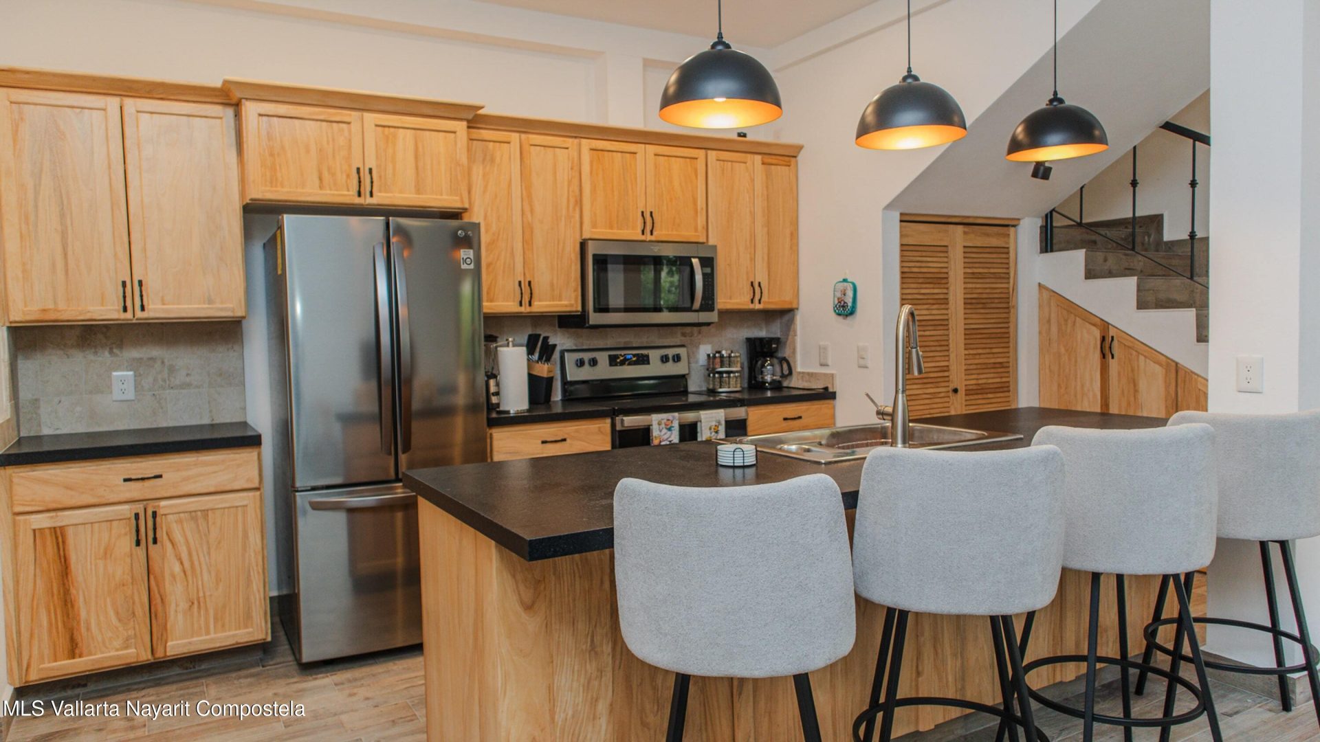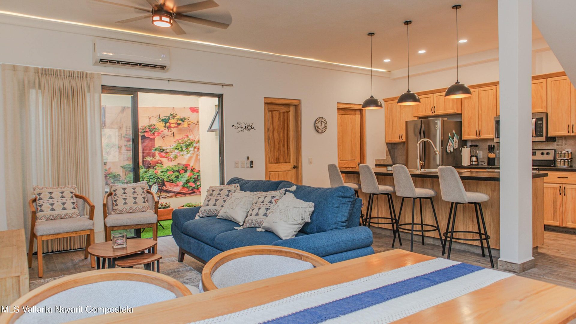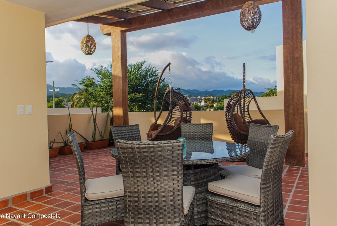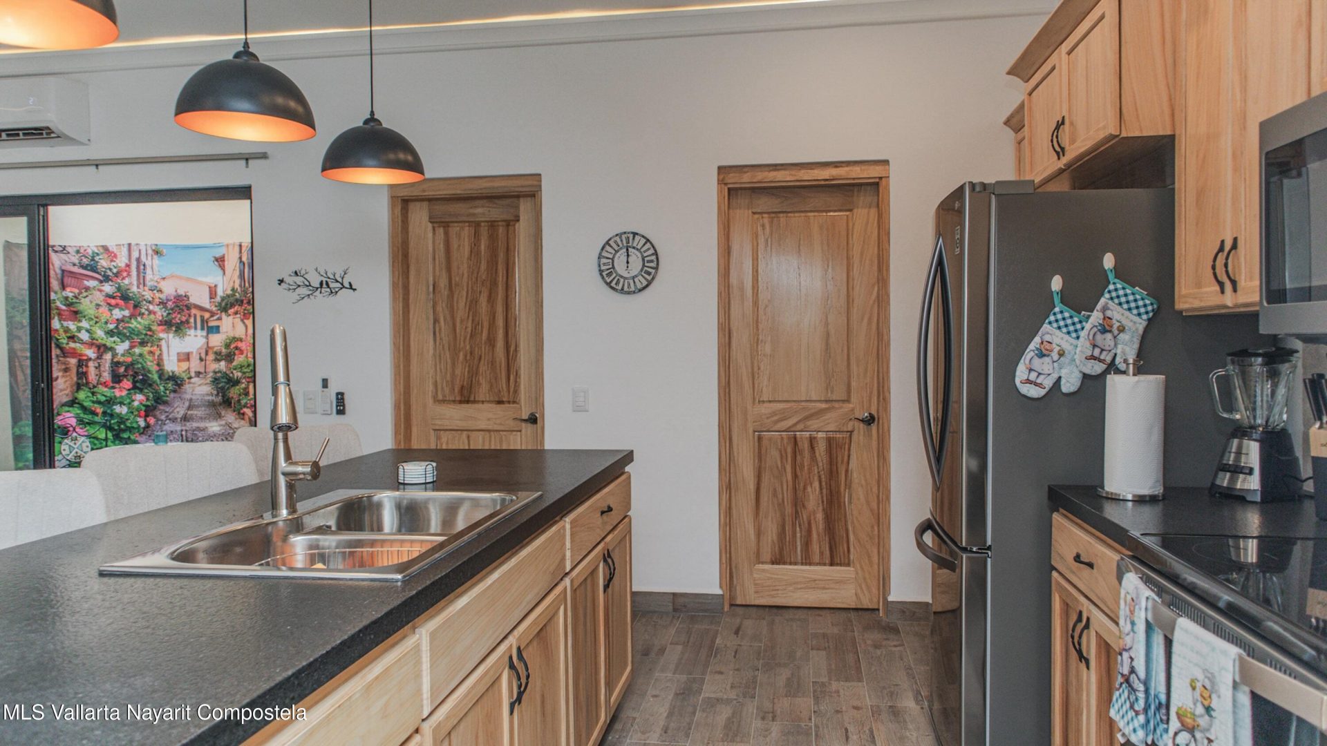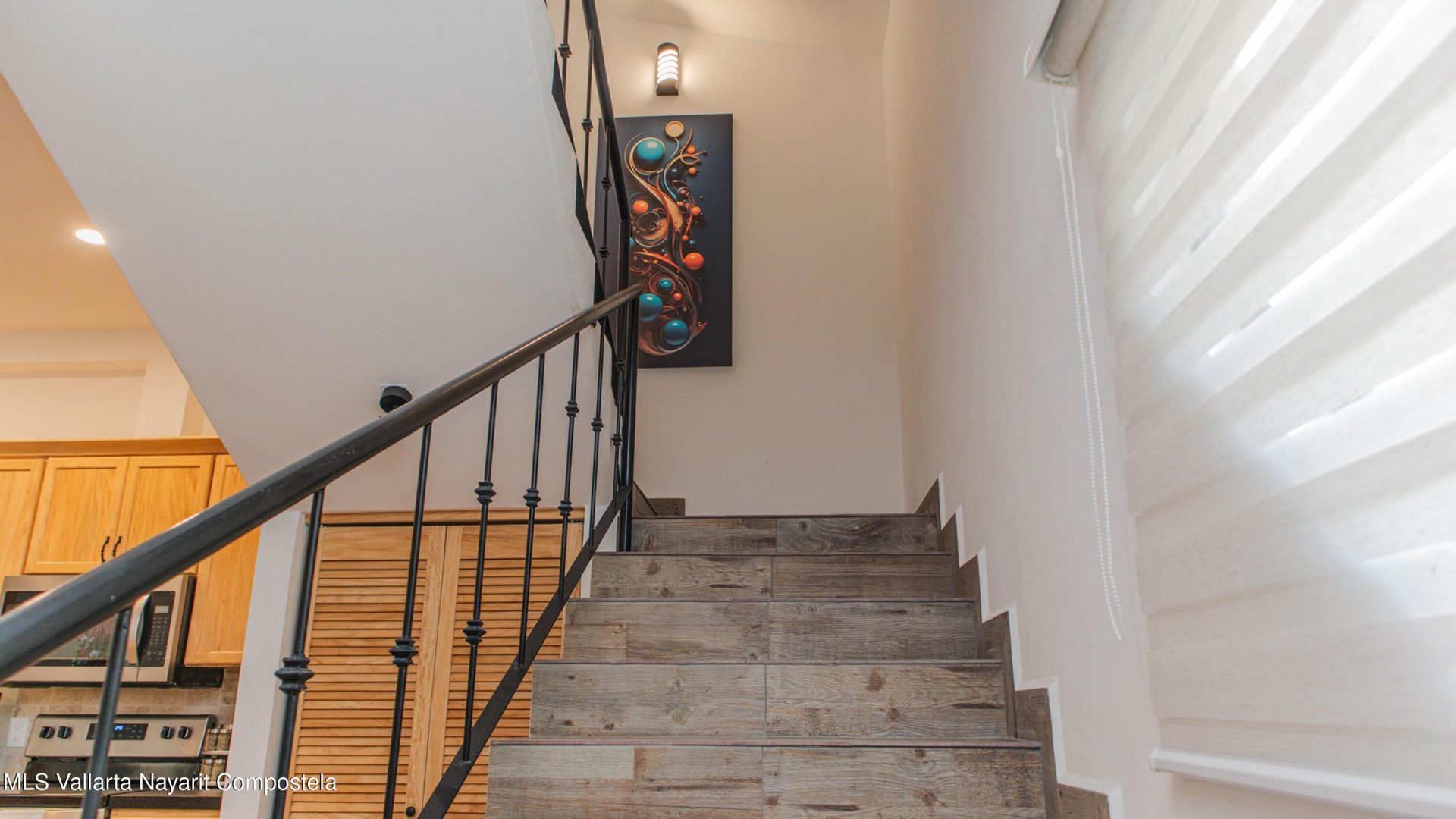 Casa Azul is a boutique 2-bed/2.5-bath home in a gated 9-unit community, just 3 blocks from La Cruz Marina and beach. Features include a private garage, full kitchen, laundry, and solar panels for low CFE bills. The highlight is the rooftop terrace with kitchenette, shaded lounge, and sweeping views. Common amenities: heated pool, palapa, outdoor kitchen, keypad entry.Casa Azul es una casa de 2 recamaras y 2.5 banos en condominio exclusivo de 9 unidades, a solo 3 cuadras de la marina y playa de La Cruz. Con cochera, cocina equipada, lavanderia y paneles solares. Roof garden con terraza, cocineta y vistas panoramicas. Areas comunes: alberca climatizada, palapa, cocina exterior y acceso con codigo.