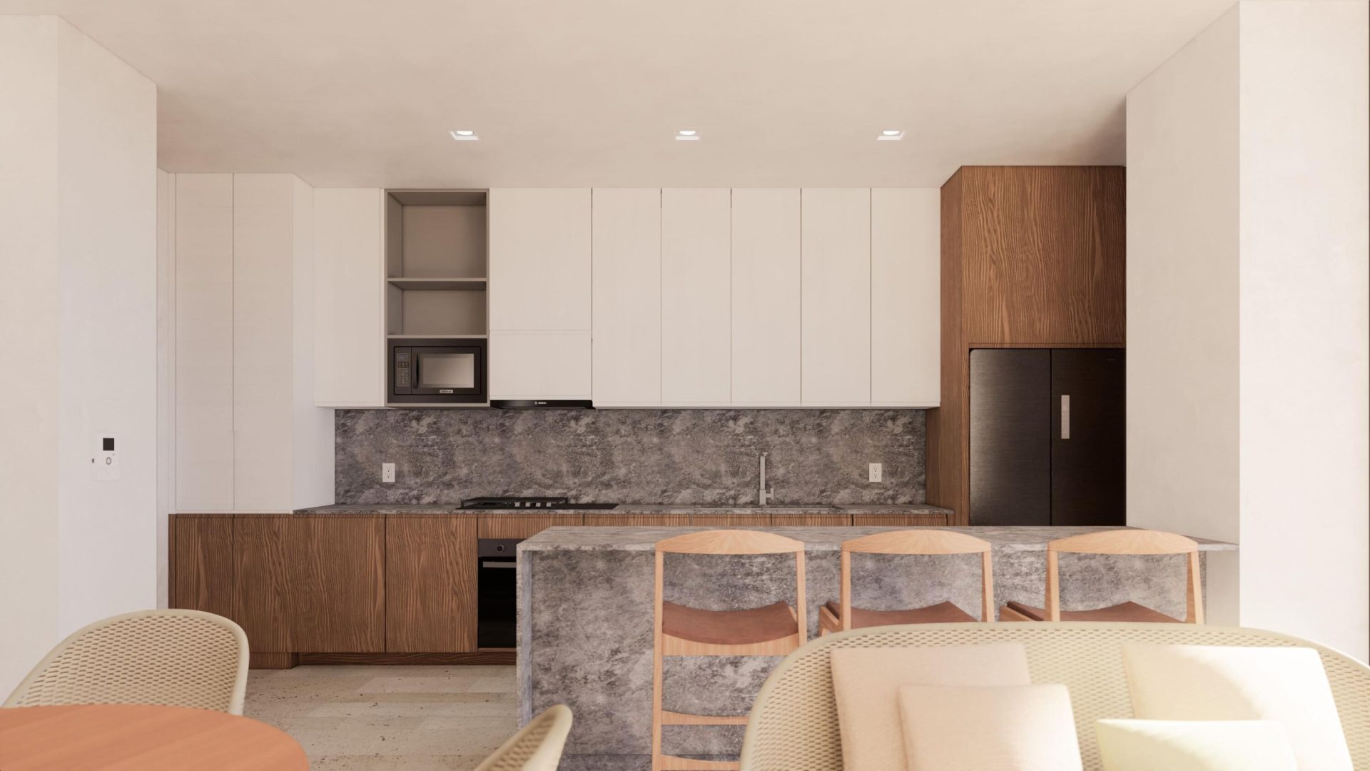 Discover your paradise at Nalua, where luxury meets affordability in the heart of the Golden Zone of Bucerias, just steps from the beach. Nalua offers 37 residential units with 7 unique layouts to choose from, each designed for modern and comfortable living. From spacious layouts perfect for entertaining to a rooftop terrace with breathtaking views, every detail has been carefully designed to enhance your lifestyle.The condominium showcases refined touches including marble flooring, porcelain tile flooring in the bedroom, and melamine cabinetry with granite countertops in the kitchen. Appliances such as microwaves and gas ovens add to the allure of the space.