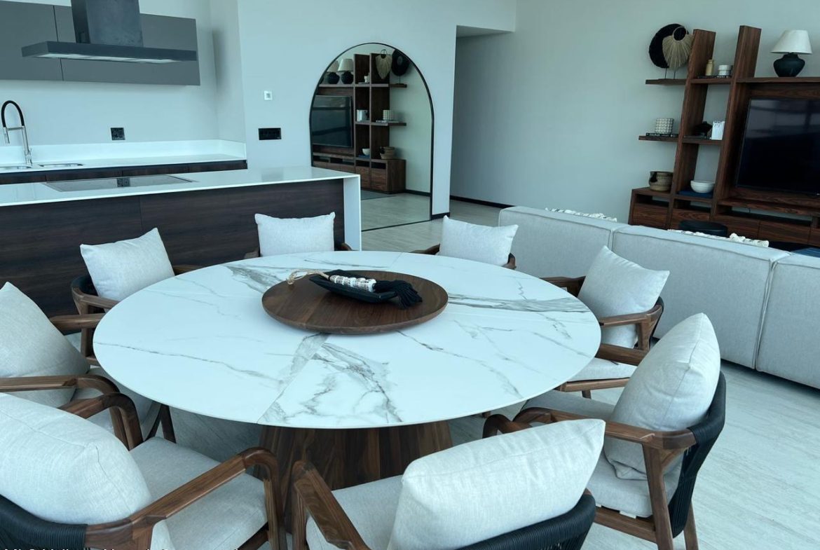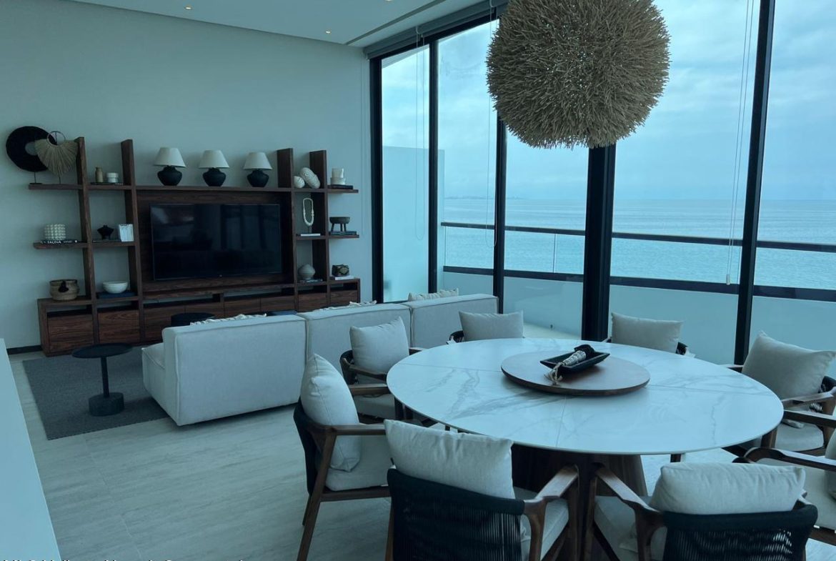 Descubre este gran departamento de 169.04 m2, disenado para ofrecer un estilo de vida sofisticado y comodo, con muebles a la medida y dediseno exclusivo. Dejate sorprender por su espectaculares vistas al mar desde la cocina y hasta las recamaras. A pie de playa en una de las zonas mas tranquilas de la BahiaDiscover this stunning 169.04 m apartment, designed to offer a sophisticated and comfortable lifestyle, featuring custom-made furniture and exclusive design. Be amazed by its spectacular ocean views from the kitchen all the way to the bedrooms. Located beachfront in one of the most peaceful areas of the bay.
