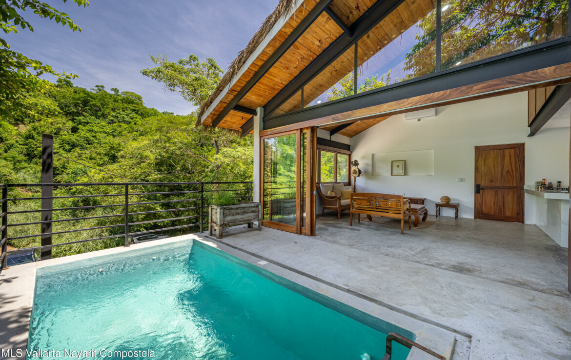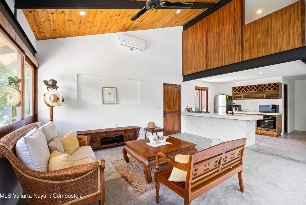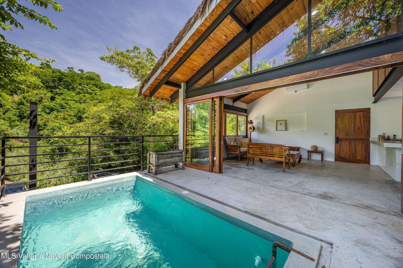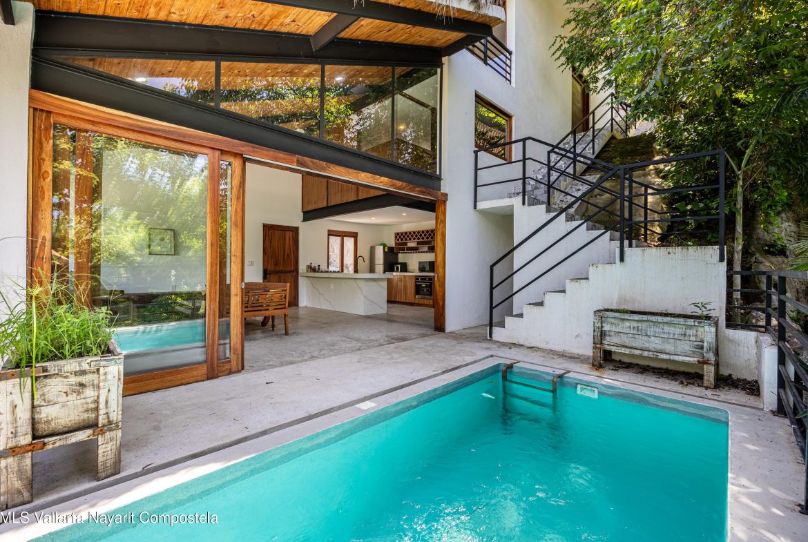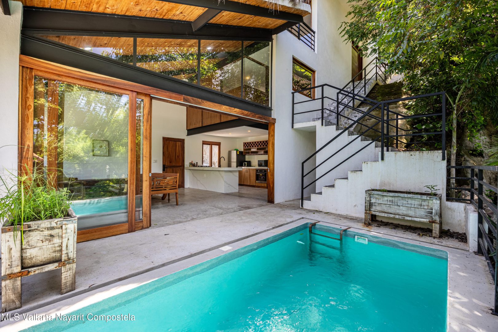 Nawalli Jungle Casitas is a stunning newly built home tucked away on the serene east side of Sayulita. Just a quick 5-minute golf cart ride from the vibrant town plaza and the popular Plaza Nawalli on the north side, this property offers both tranquility and convenience. Set on a 209.17 m lot with approximately 110 m of modern construction spread over three levels, this home is designed for comfort, style, and versatility.The street level features a 2-car garage, storage space, and a laundry area. On the first level, you’ll find a bright open living space, a well-appointed kitchen, a refreshing pool, a full bath, and bedroom. The second level offers another bedroom with sweeping jungle views and a full bath.