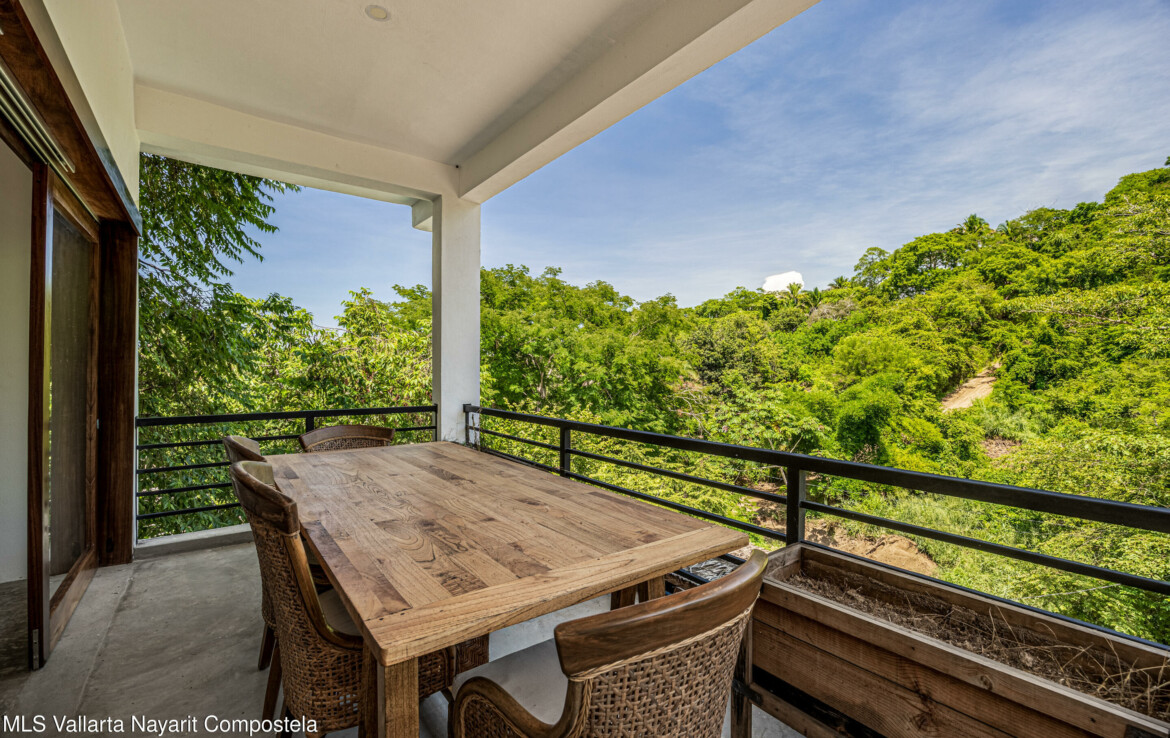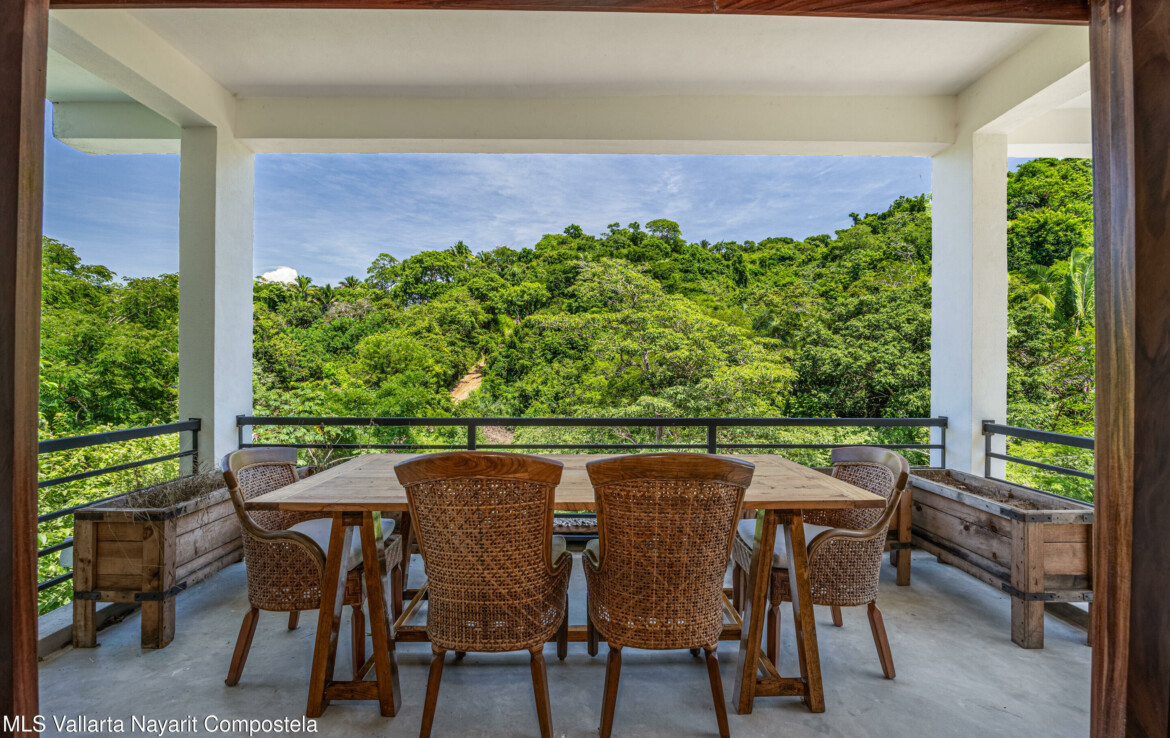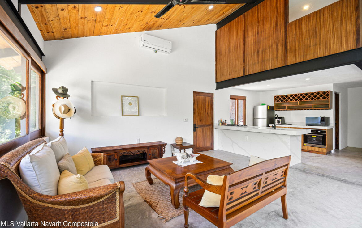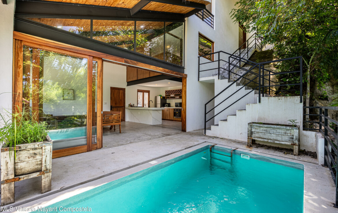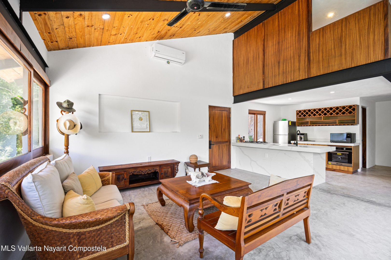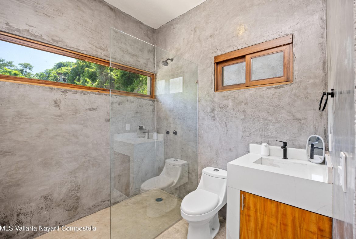 Nawalli Jungle Casitas is a stunning newly built home tucked away on the serene east side of Sayulita. Just a quick 5-minute golf cart ride from the vibrant town plaza and the popular Plaza Nawalli on the north side, this property offers both tranquility and convenience. Set on a 209.17 m lot with approximately 110 m of modern construction spread over three levels, this home is designed for comfort, style, and versatility.The street level features a 2-car garage, storage space, and a laundry area. On the first level, you’ll find a bright open living space, a well-appointed kitchen, a refreshing pool, a full bath, and bedroom. The second level offers another bedroom with sweeping jungle views and a full bath.