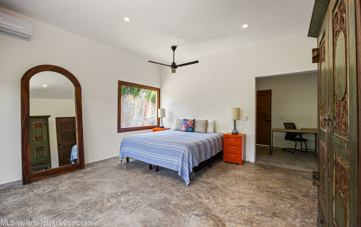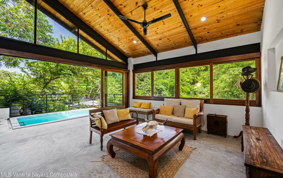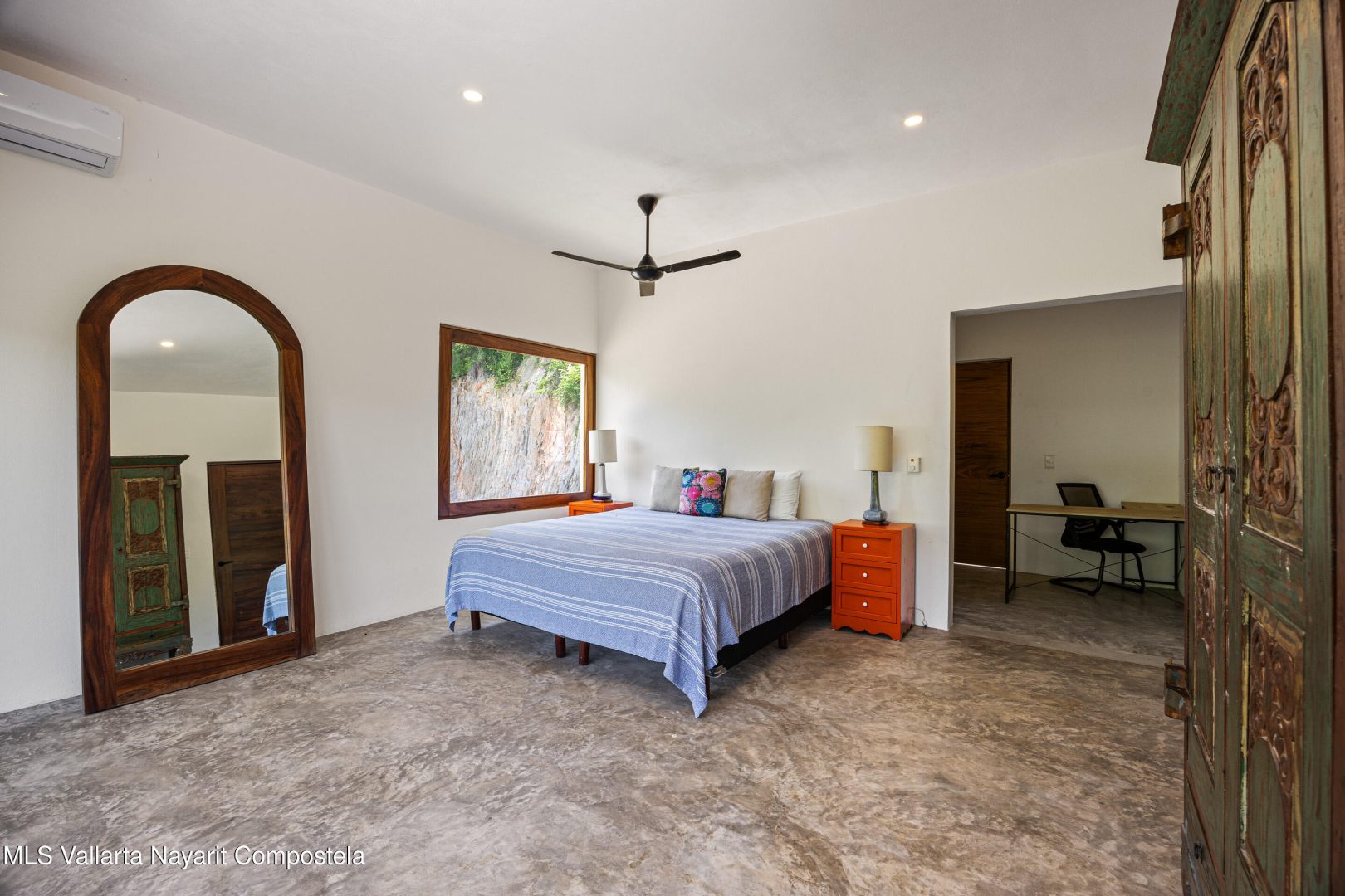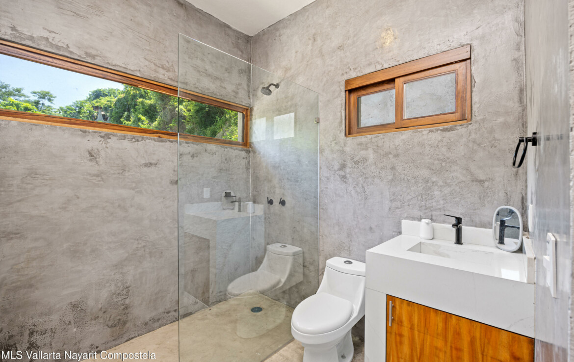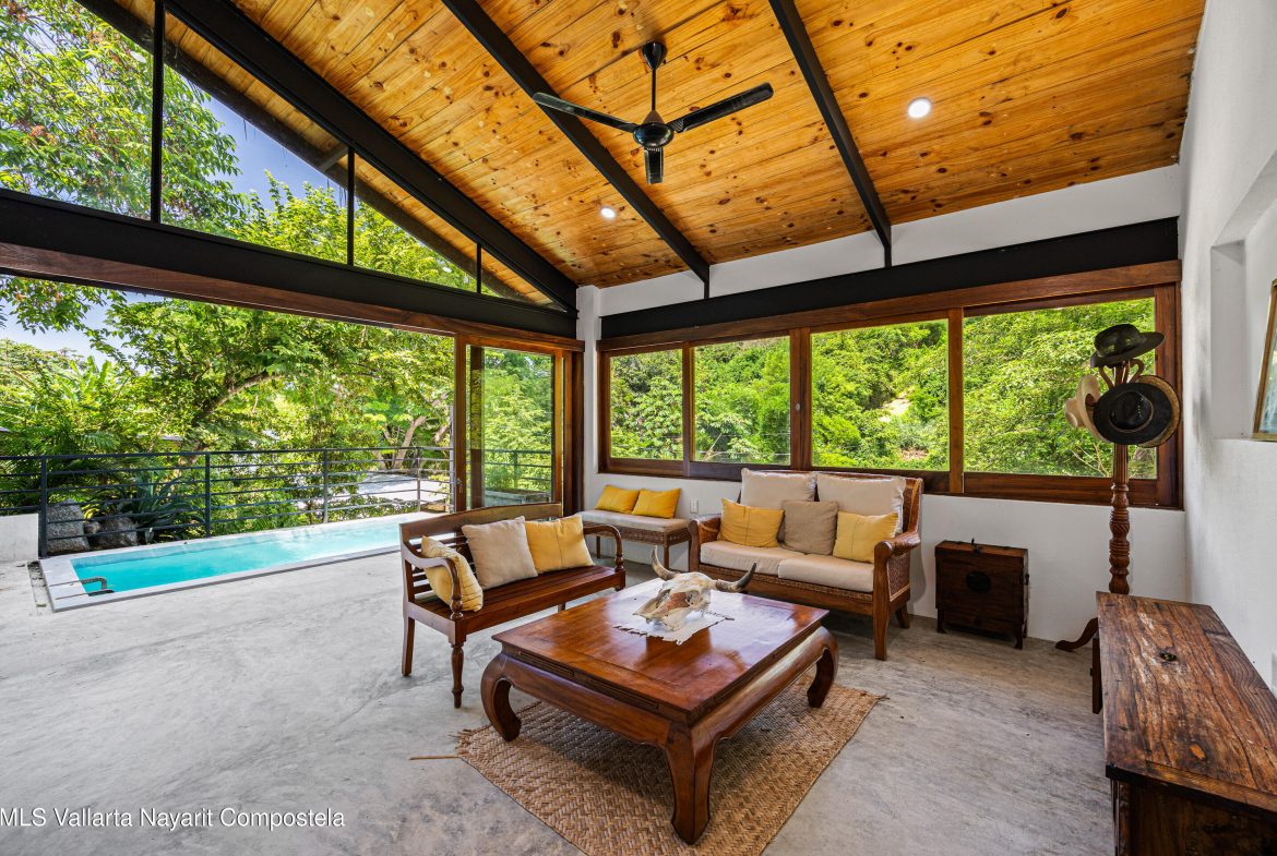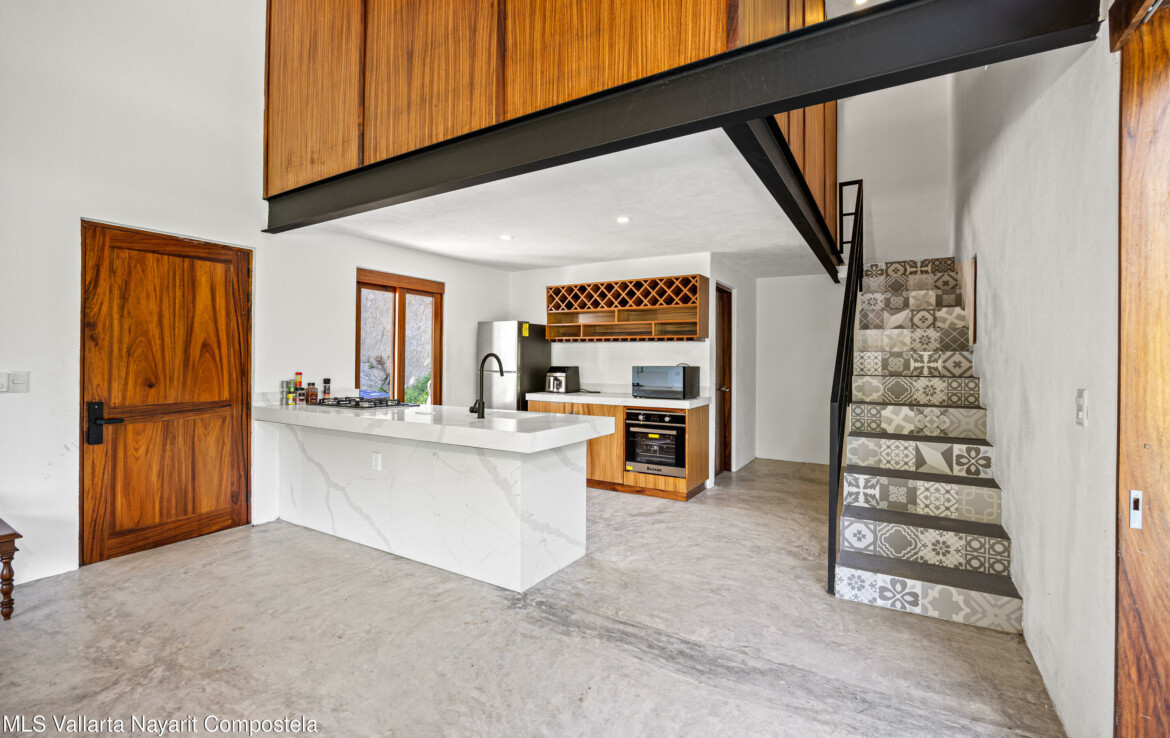 Nawalli Jungle Casitas is a stunning newly built home tucked away on the serene east side of Sayulita. Just a quick 5-minute golf cart ride from the vibrant town plaza and the popular Plaza Nawalli on the north side, this property offers both tranquility and convenience. Set on a 209.17 m lot with approximately 110 m of modern construction spread over three levels, this home is designed for comfort, style, and versatility.The street level features a 2-car garage, storage space, and a laundry area. On the first level, you’ll find a bright open living space, a well-appointed kitchen, a refreshing pool, a full bath, and bedroom. The second level offers another bedroom with sweeping jungle views and a full bath.