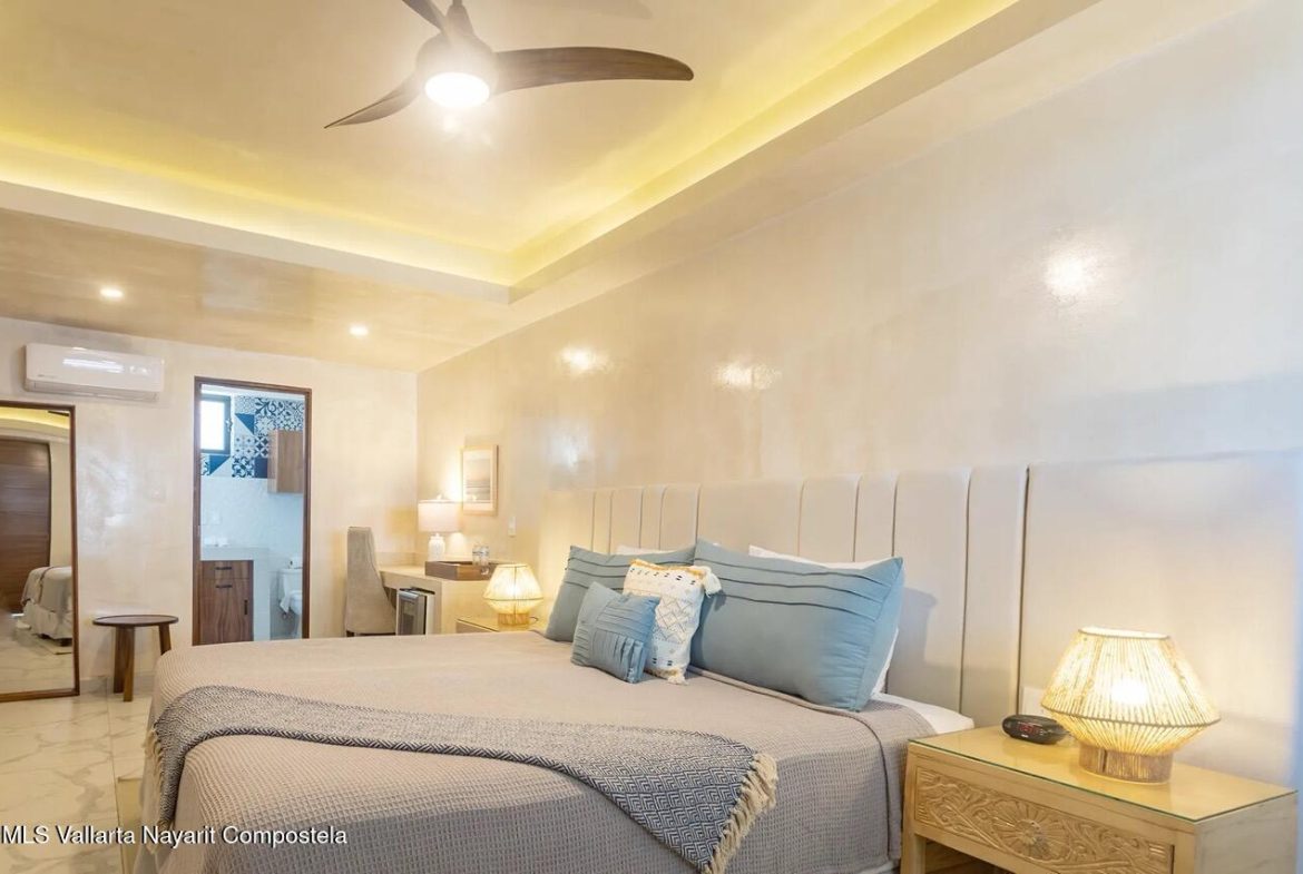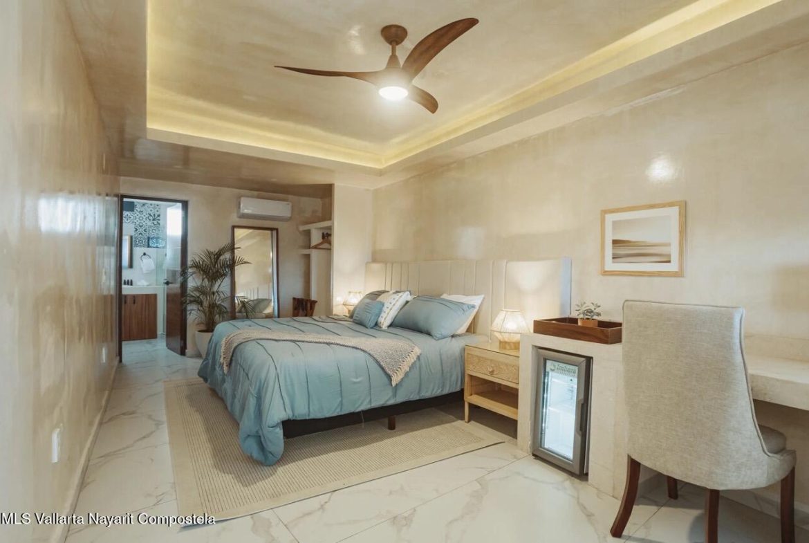 Nawalli- Puerto Vallarta is an expansive home with 9 bedrooms, each with an En Suite bathroom. The Casa is spread over 408.92 m on a 319.62 m lot. Our oceanview suites are decorated in an elegant and contemporary style and offer a haven of tranquility amidst the hustle and bustle of fabulous P.V. The home offers plenty of space for outdoor living, outdoor dining and enjoying the nightly sunsets.This stunning multi-level property offers exciting ocean and city views, making it perfect for a turnkey residential investment and inviting friends and family to enjoy family vacations.