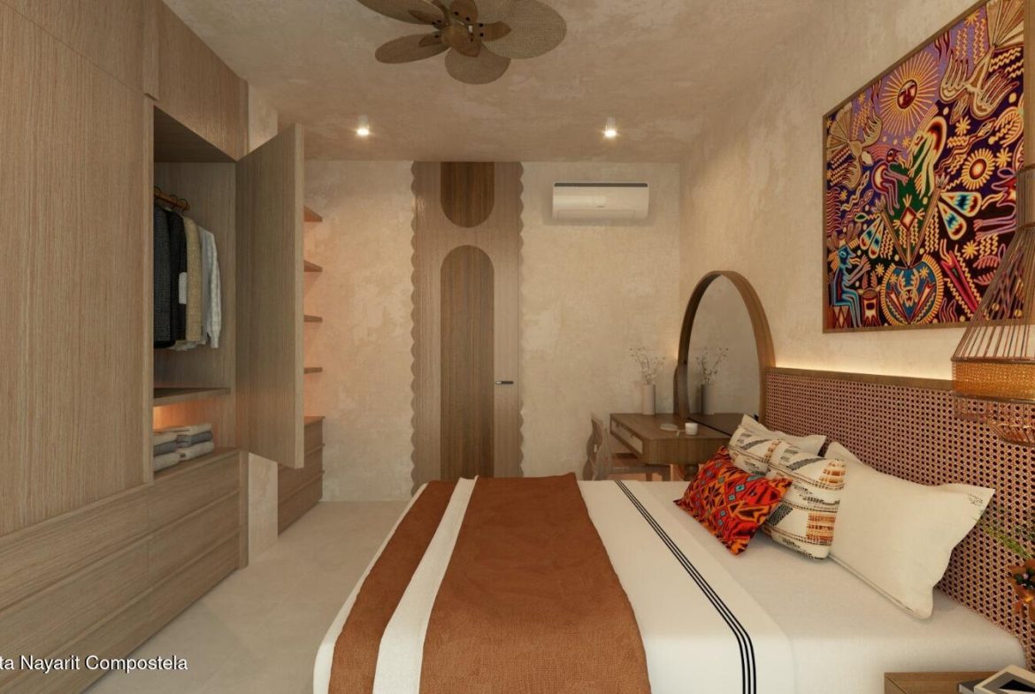 A 2 bed, 2 bath unit with ocean views in Nayari offers a luxurious, boho-tropical living experience with guaranteed ocean views. The unit is crafted with organic materials and high-end finishes, blending seamlessly with nature. It’s located just a short walk from Sayulita’s town center, offering both convenience and serenity. Residents have access to amenities like a rooftop infinity pool, yoga deck, and coworking lounge. Delivery is scheduled for December 2027.