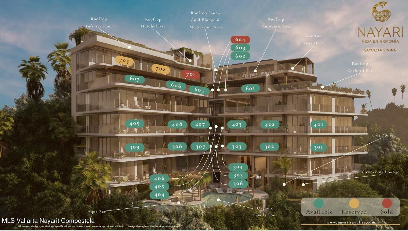 A 3 bed, 3 bath unit with ocean views in Nayari offers a luxurious, boho-tropical living experience with guaranteed ocean views. The unit is crafted with organic materials and high-end finishes, blending seamlessly with nature. It’s located just a short walk from Sayulita’s town center, offering both convenience and serenity. Residents have access to amenities like a rooftop infinity pool, yoga deck, and coworking lounge. Delivery is scheduled for December 2027.