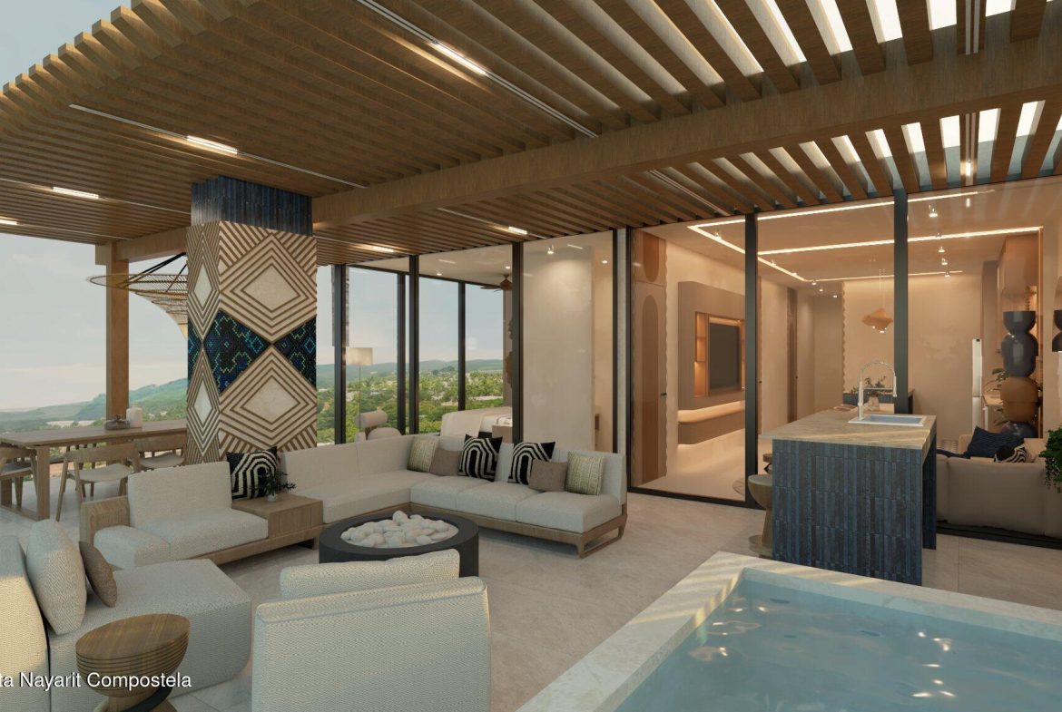 A 2 bed, 2 bath unit with ocean views in Nayari offers a luxurious, boho-tropical living experience with guaranteed ocean views. The unit is crafted with organic materials and high-end finishes, blending seamlessly with nature. It’s located just a short walk from Sayulita’s town center, offering both convenience and serenity. Residents have access to amenities like a rooftop infinity pool, yoga deck, and coworking lounge. Delivery is scheduled for December 2027.