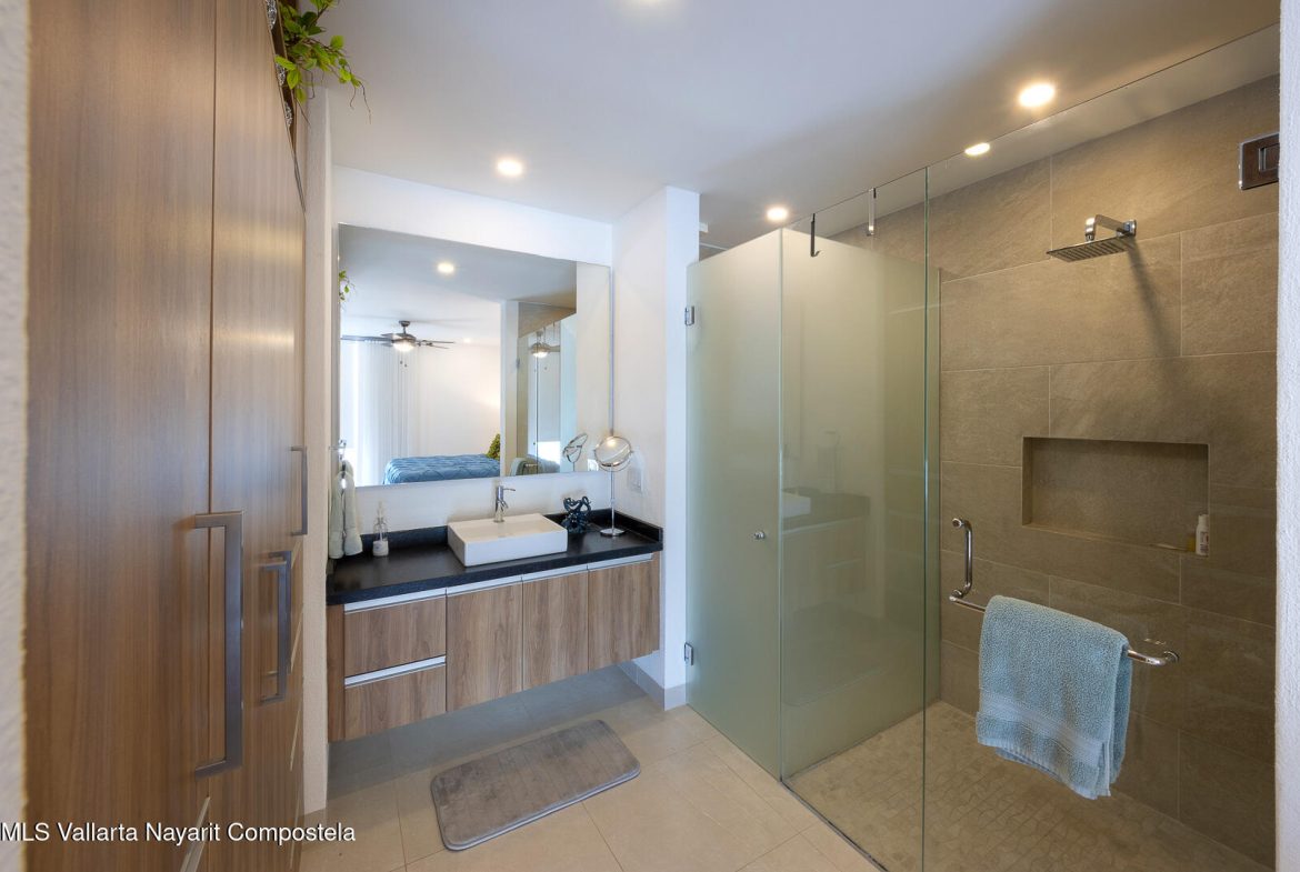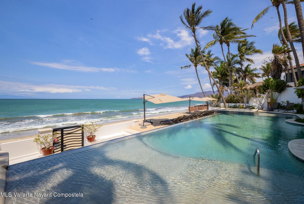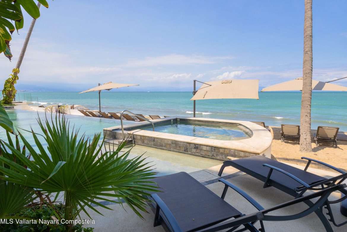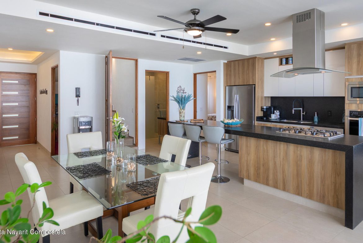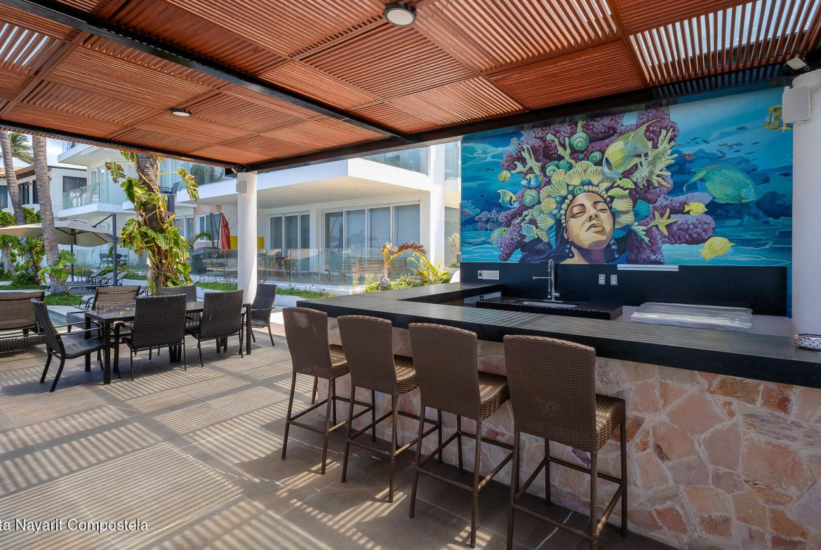 This stunning 2 level Ocean front penthouse in Zona Dorada in Bucerias offers amazing ocean views. Each level has its own spacious terrace. Each level also offers 2 separate entrances, if you choose to rent individually or access via staircase internally. The 1st level features 2 bedrooms with full bathrooms, and full kitchen. Rooftop level includes a master suite bedroom & bathroom, 1/2 bath, 2nd kitchen & laundry room. Each level is beautifully furnished. Fine finishings throughout. The property comes with a deeded parking space. Residents can also enjoy an infinity pool over looking the beach. Property offers a gym & small private restaurant. 24/7 security. Walking distance to all Golden Zone restaurants, cafes & boutique shops. Enjoy a piece of paradise with stunning ocean views