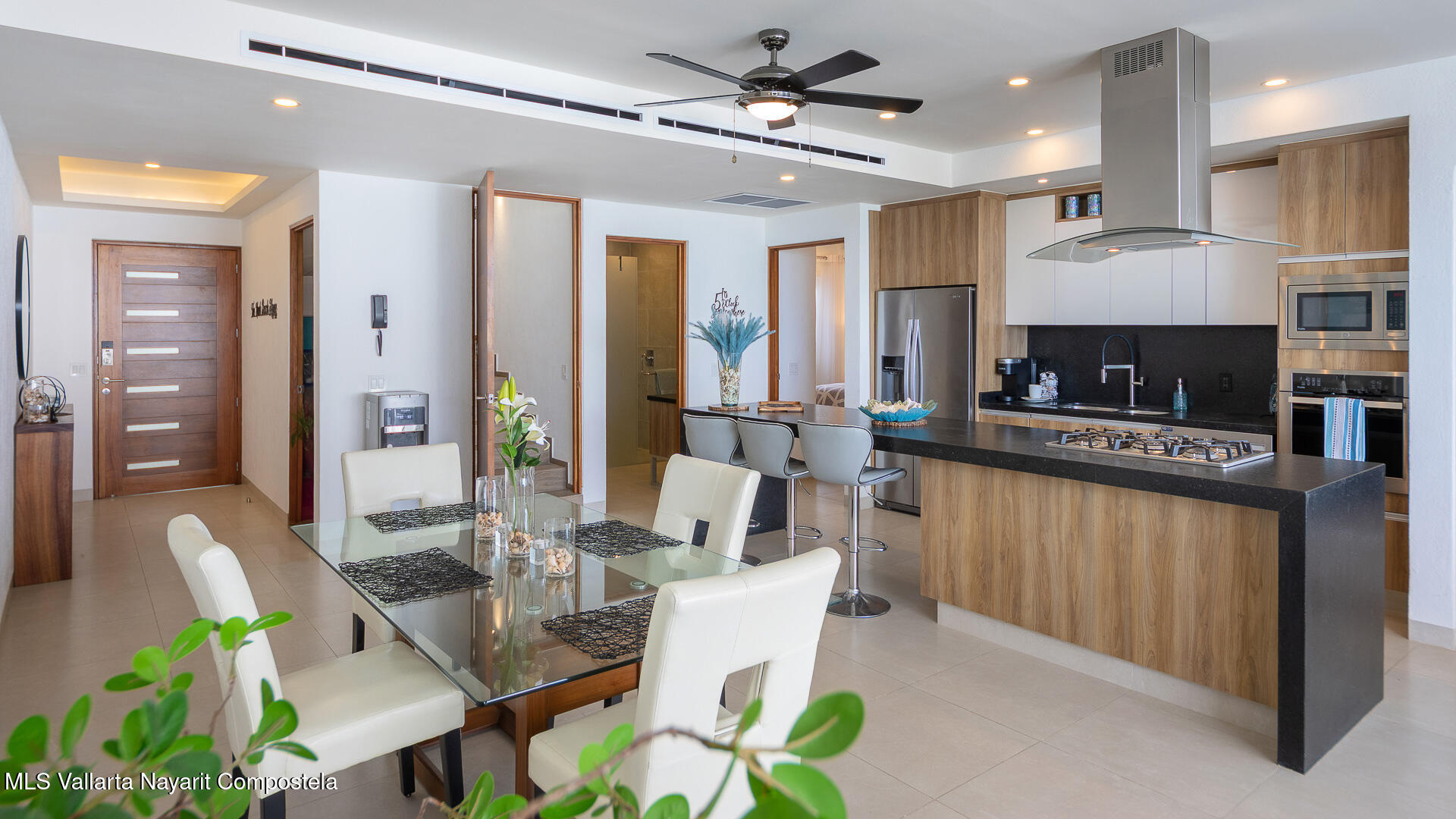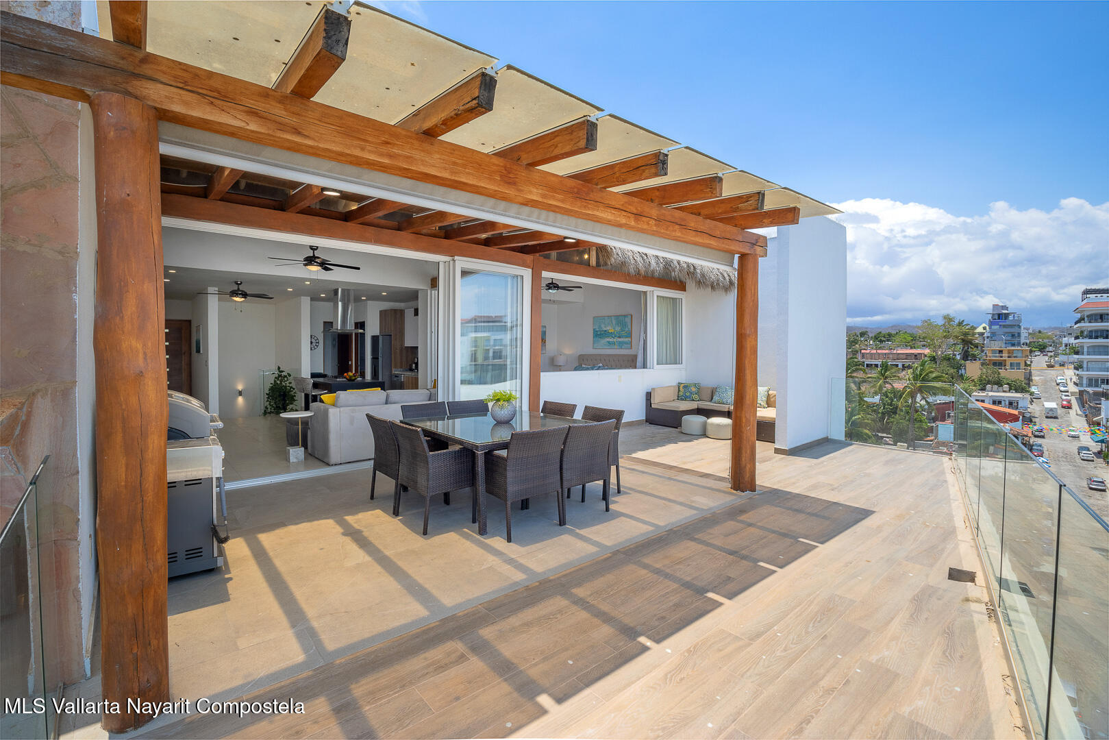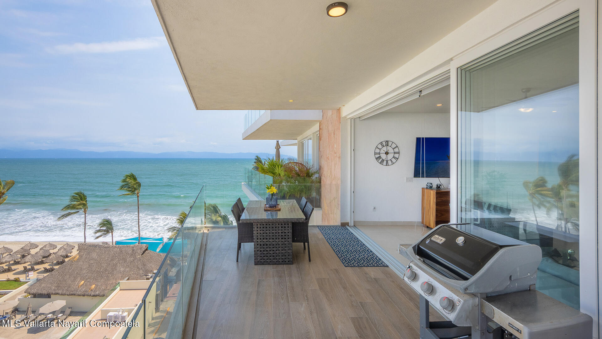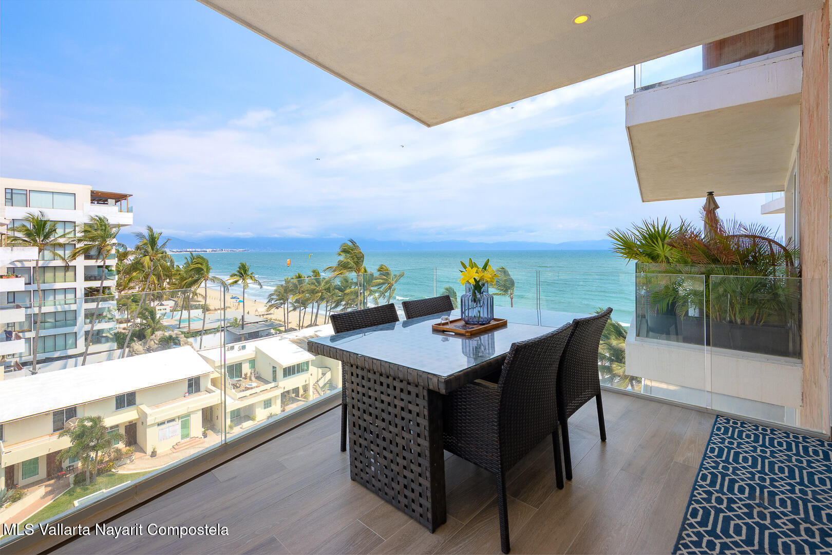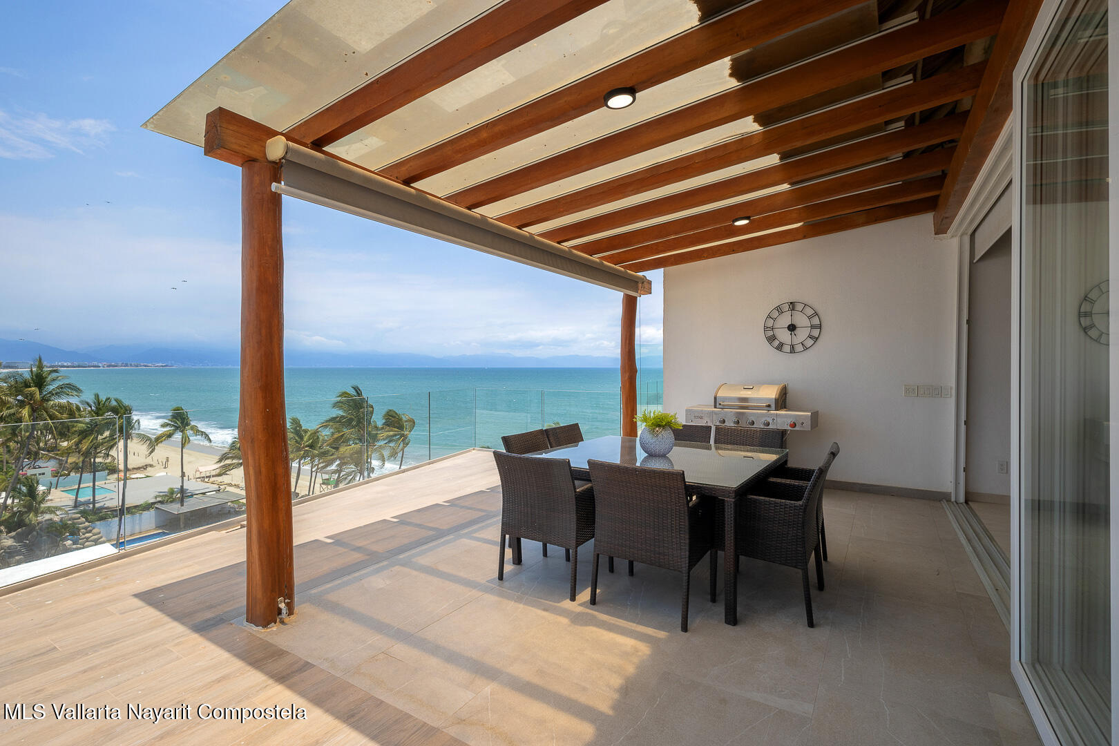This stunning 2 level Ocean front penthouse in Zona Dorada in Bucerias offers amazing ocean views. Each level has its own spacious terrace. Each level also offers 2 separate entrances, if you choose to rent individually or access via staircase internally. The 1st level features 2 bedrooms with full bathrooms, and full kitchen. Rooftop level includes a master suite bedroom & bathroom, 1/2 bath, 2nd kitchen & laundry room. Each level is beautifully furnished. Fine finishings throughout. The property comes with a deeded parking space. Residents can also enjoy an infinity pool over looking the beach. Property offers a gym & small private restaurant. 24/7 security. Walking distance to all Golden Zone restaurants, cafes & boutique shops. Enjoy a piece of paradise with stunning ocean views