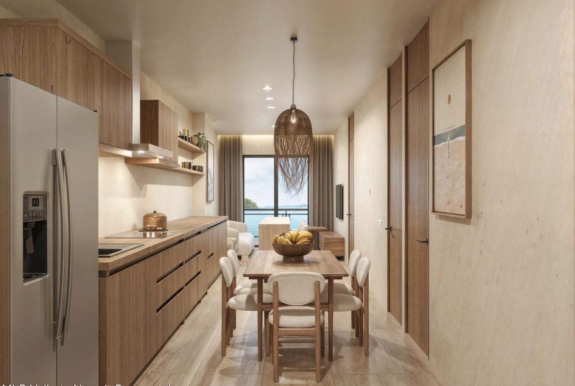 NUKMA Beachfront Life, donde el lujo se encuentra con la libertad del oceano. Explora espacios donde el diseno innovador se complementa con vistas infinitas al mar. Vive el privilegio de despertar cada dia en un paraiso disenado para el deleite y la distincion. Bienvenido a tu nuevo hogar, donde cada detalle eleva tu experiencia de vida.Un desarrollo de 54 unidades con vista al mar y a la montana de 1, 2 y 3 recamaras, cuenta con amenidades como alberca en rooftop y planta baja, lobby, elevador, cafeteria, bar gimnasio, area de yoga, cocina social y sauna.