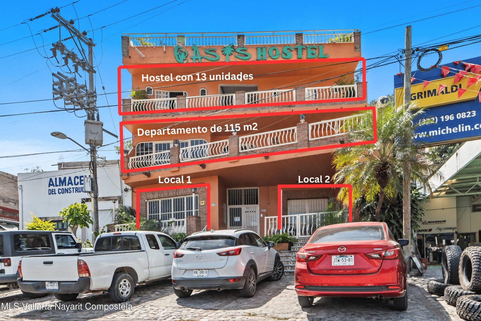 Propiedad ubicada sobre Av. Luis Donaldo Colosio, una de las avenidas con mayor conectividad y flujo vehicular en Vallarta, actualmente operando como hostel y generando multiples fuentes de ingreso; el edificio cuenta con 4 niveles: en planta baja 2 locales comerciales con frente a la avenida, en el primer nivel 2 departamentos independientes (uno de 3 recamaras, 2 banos y terraza con 115 m, y otro de 1 recamara y 1 bano con 86 m), en el tercer nivel un hostel con 12 unidades y el cuarto nivel una terraza con vista a la montana; ofrece 6 espacios de estacionamiento, uso de suelo mixto, y cuenta con doble acceso (avenida principal y calle trasera). Por su ubicacion y distribucion, es ideal para continuar como negocio de hospedaje, renta de departamentos o desarrollar un proyecto mixto.