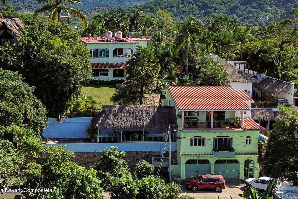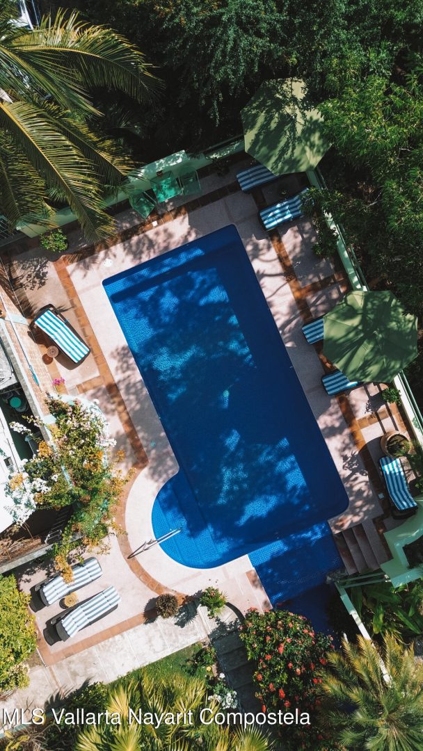 The San Pancho Inn welcomed its first guests in 2006 and has since become a well-established boutique hotel with loyal, returning clientele. This charming property features five separate accommodations: two 2-bedroom units, two 1-bedroom units, and one studio, offering flexibility for owners and guests alike.Set on a sprawling 16,250 sq ft lot, the grounds are beautifully landscaped with lush tropical gardens, hidden pathways, and mature trees, creating a private and tranquil atmosphere. A standout feature is the oversized cascading pool, which flows into an additional water feature and serves as the centerpiece of the property.