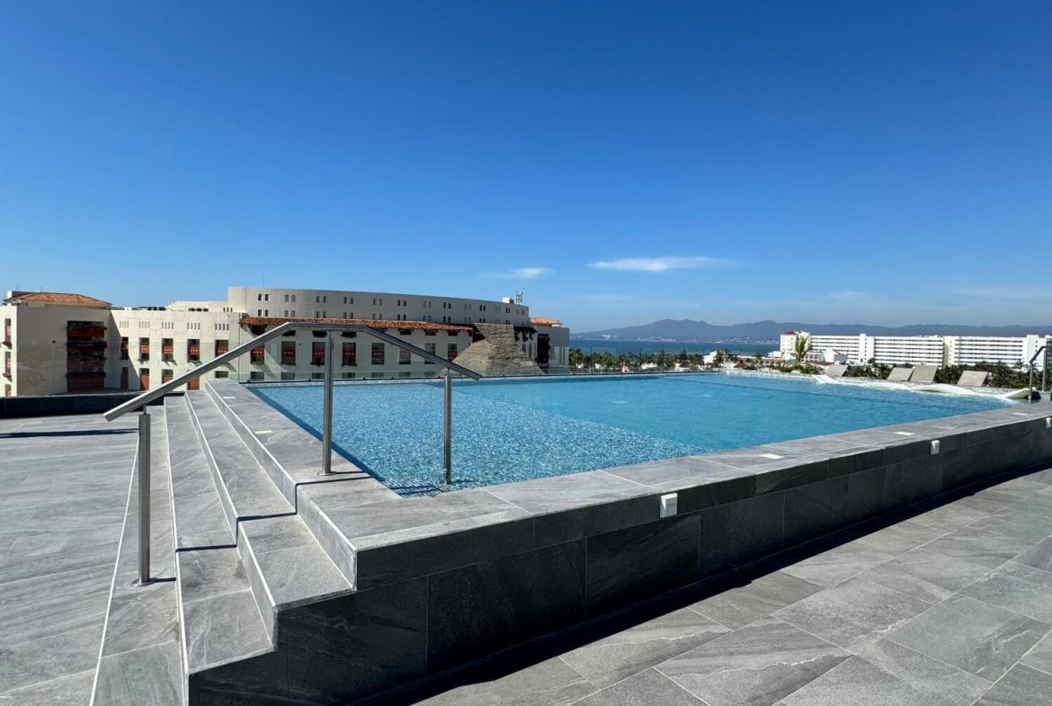 Departamento nuevo amueblado, de 2 recamaras 2 banos, listo para estrenar, en Paseo de los Cocoteros en Nuevo Vallarta, a solo 5 minutos caminando de la playa, cuenta con seguridad las 24 horas, estacionamiento en el sotano, roof top con alberca, area de BBQ, alberca en planta baja, canchas de padel, gimnasio, muelle para embarcaciones. Brand new furnished 2-bedroom, 2-bathroom apartment, ready to move into, on Paseo de los Cocoteros in Nuevo Vallarta, just a 5-minute walk from the beach. It features 24-hour security, basement parking, a rooftop pool, a BBQ area, a ground-floor pool, paddle tennis courts, a gym, and a boat dock.