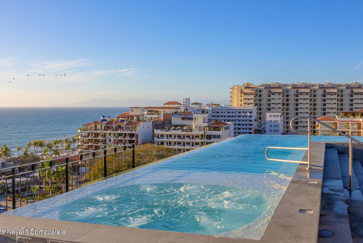 This gorgeously designed 2 bed, 2 bath condo in the exclusive and luxe Oceana building is just 1.5 blocks from the beach and in the very center of all Zona Romantica has to offer! The unit features a bright and airy main open living space with a fully equipped kitchen, comfortable dining/living area and a large primary suite, all connected to an oversized outdoor patio with direct city and water views to enjoy. The spacious guest bedroom is tucked away in the back of the condo, offering ultimate privacy. Also included is a large deeded parking space. Oceana also features a gorgeous rooftop with infinity pool, jacuzzi, Wolf BBQ, gym and more…Come discover Oceana 105 today!