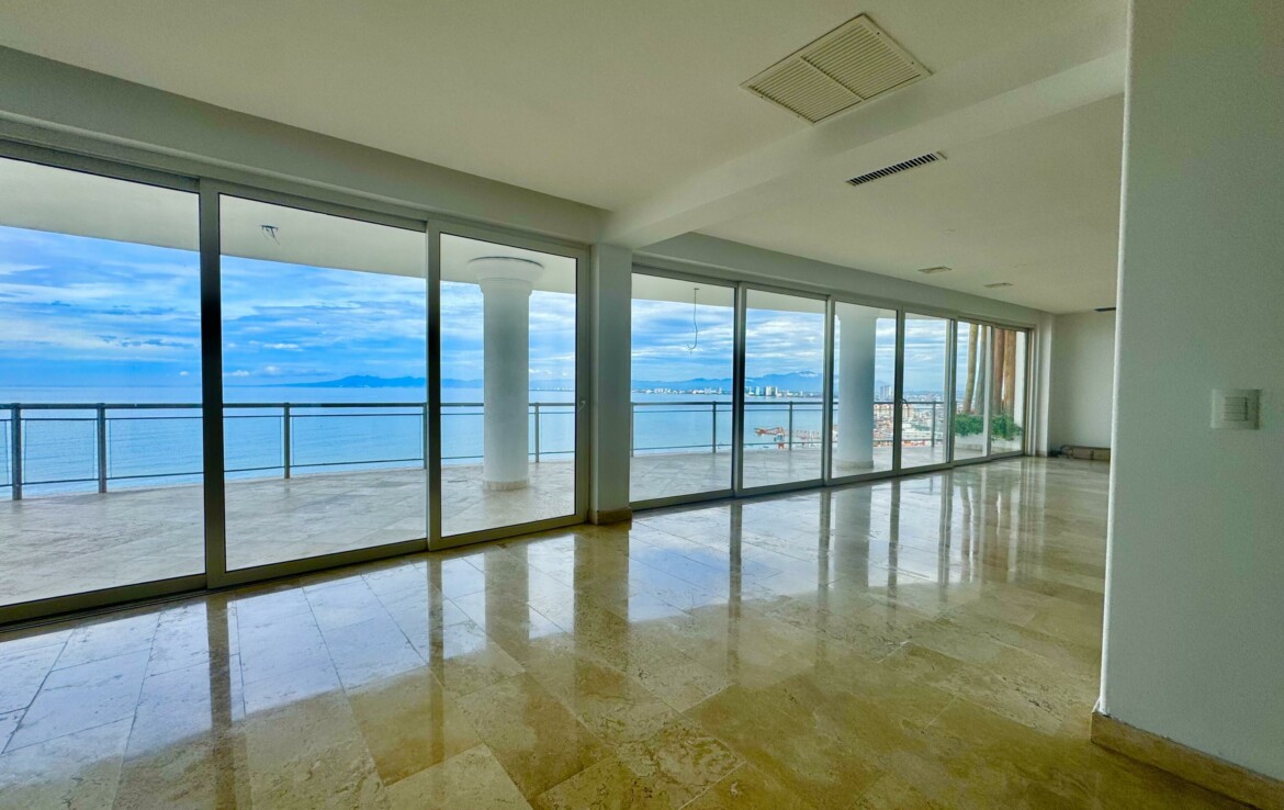 BRAND NEW UNIT! Photos are from model unit! This unit is for sale unfurnished and with out kitchen. Personalize this unit to your own taste (see private remarks) Situated within the exclusive residential development of Ocean 735 and Spa overlooking the Pacific Ocean in sunny Puerto Vallarta. Step into a condominium building with a private elevator that has a key lock system to secure privacy of each unit. This unit has 4 bedrooms, 3 and a half baths, walking closet on master bedroom, large kitchen, dining room, living room, meditation room, central air conditioning and large laundry room in an area of more than 4,500 sqft. This condo has everything an experienced buyer is looking for. The common areas on the Spa level have a gym, pool, jacuzzi, sauna, steam room, massage area.